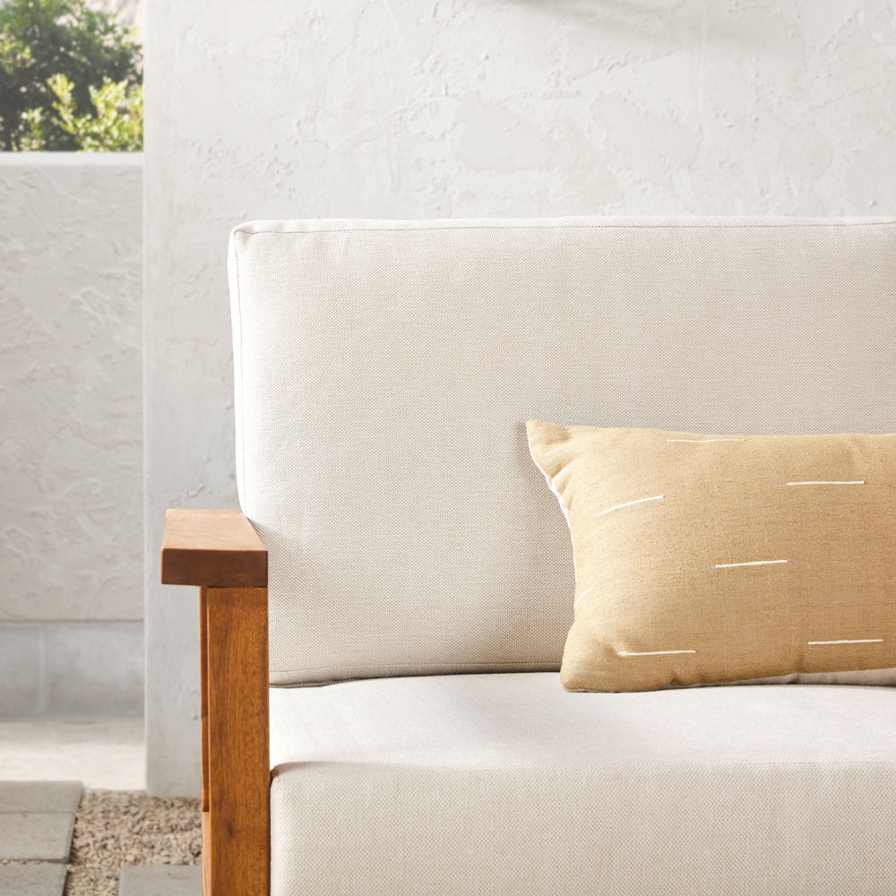 The simple yet trend-setting silhouette of this sectional will set your space apart, whether it’s sitting by the pool, around the fire pit, or on your apartment balcony. Sleek and sustainable solid acacia wood frames make up a sturdy, long-wearing base, and upholstered cushioned and backrests top off this set with a comfy place to sit and chat for hours. Gather ‘round and enjoy the company of your favorite people or even furry friends.