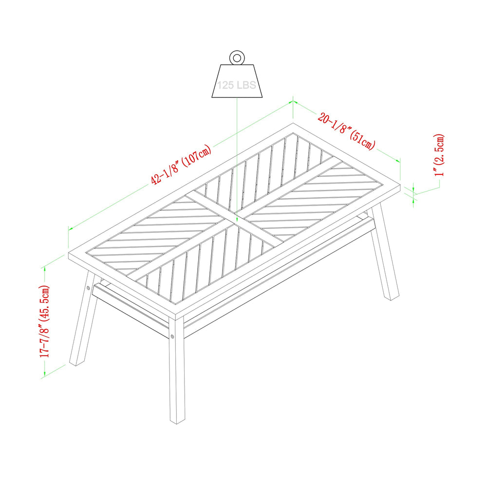 Coffee Table: 17.75" H x 42" L x 20.25" W 16.5 LBS Assembly Instructions