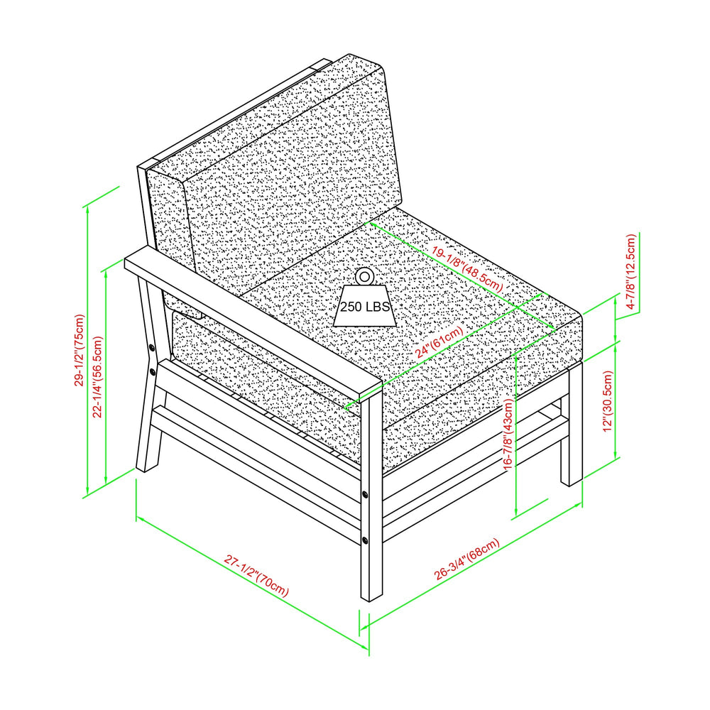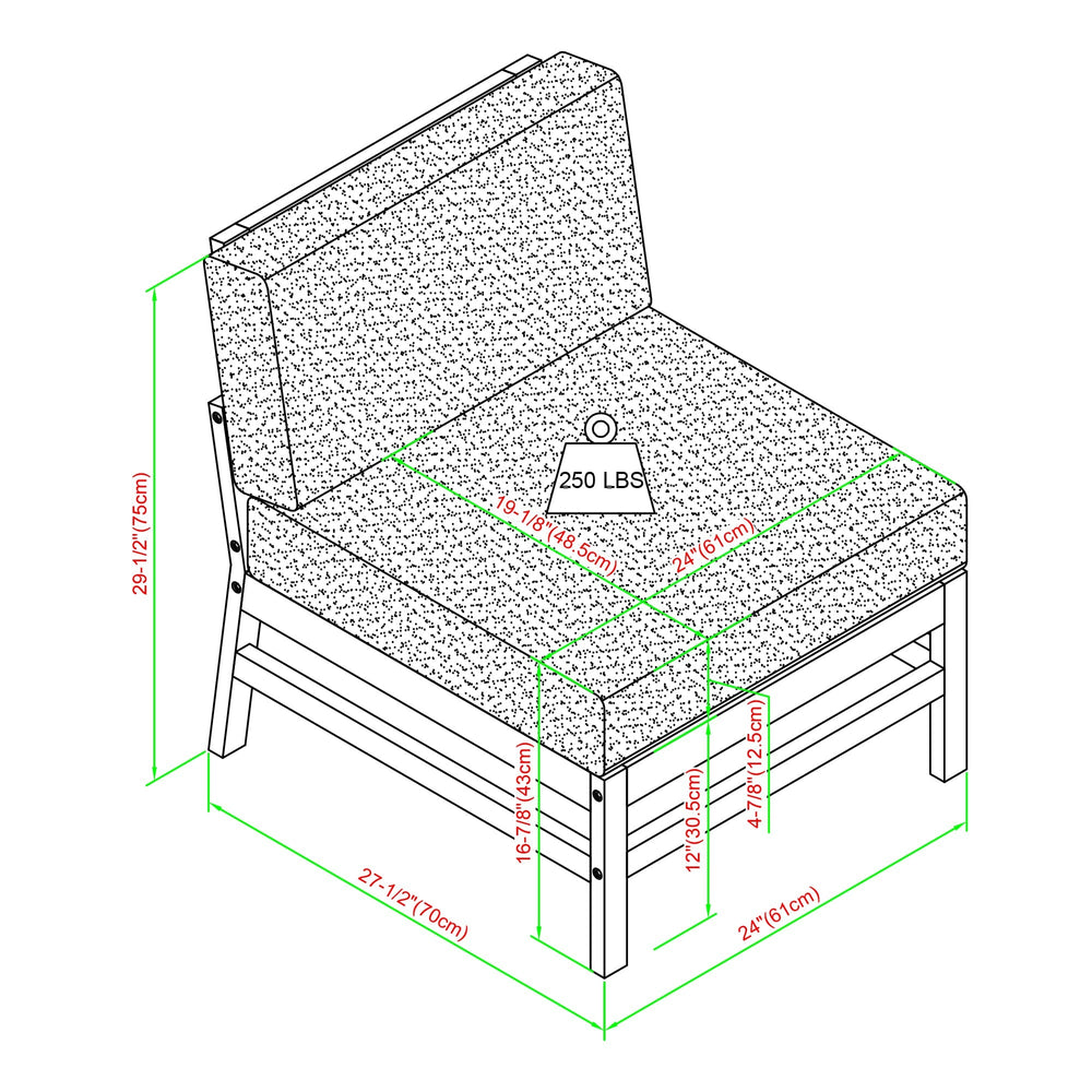 Armless Sectional: 29.5" H x 24" L x 27.5" W 30 LBS Assembly Instructions