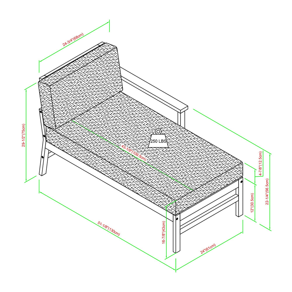 Right Arm Chaise: 29.5" H x 51.13" L x 24.75" W 40 LBS Assembly Instructions