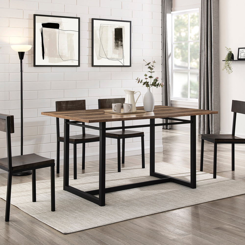 The urban appeal and moisture-resistant surface of this dining table will be the cherry on top of dinnertime favorites. Made with smooth, sanded metal, high-grade MDF, and long-wearing laminate, this dining table will help host game nights, mealtimes, and late-night chats for as long as you’d like it to. Its sleek silhouette will mesh seamlessly with all your other décor, no matter your interior style, and its melamine-coated tabletop means it’s extra functional too! Set your drinks, dinners, and decorative vases on this sturdy surface with no fear of warping or water damage.