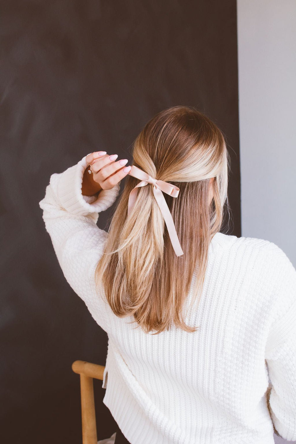 Our bows are the perfect mix of feminine, sophistication, and whimsy! This pale blush pink bow is a must. Made with a soft satin ribbon it matches any hairstyle and outfit, seamlessly, and the small metal alligator clip makes it so easy to apply. Elevate any look instantly with this adorable Andi Bow.