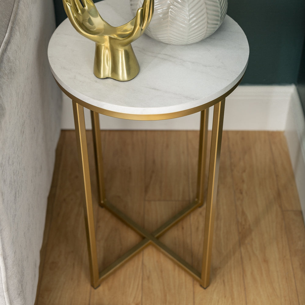Classy yet convenient, this 16” side table is sure to add an extra element of elegance in your home. Pair it with our matching 36” round coffee table, or use it alone as the staple piece of your own unique arrangement.