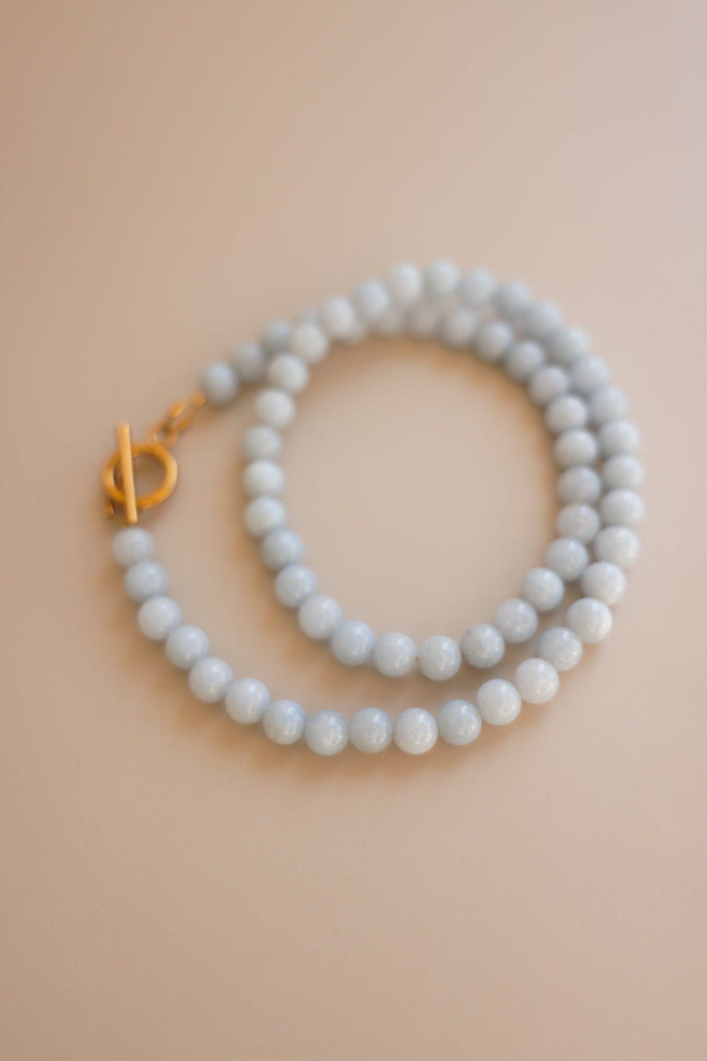 Handcrafted from 6mm aquamarine gemstones, gold filled 2mm spacer beads, and gold filled toggle closure.