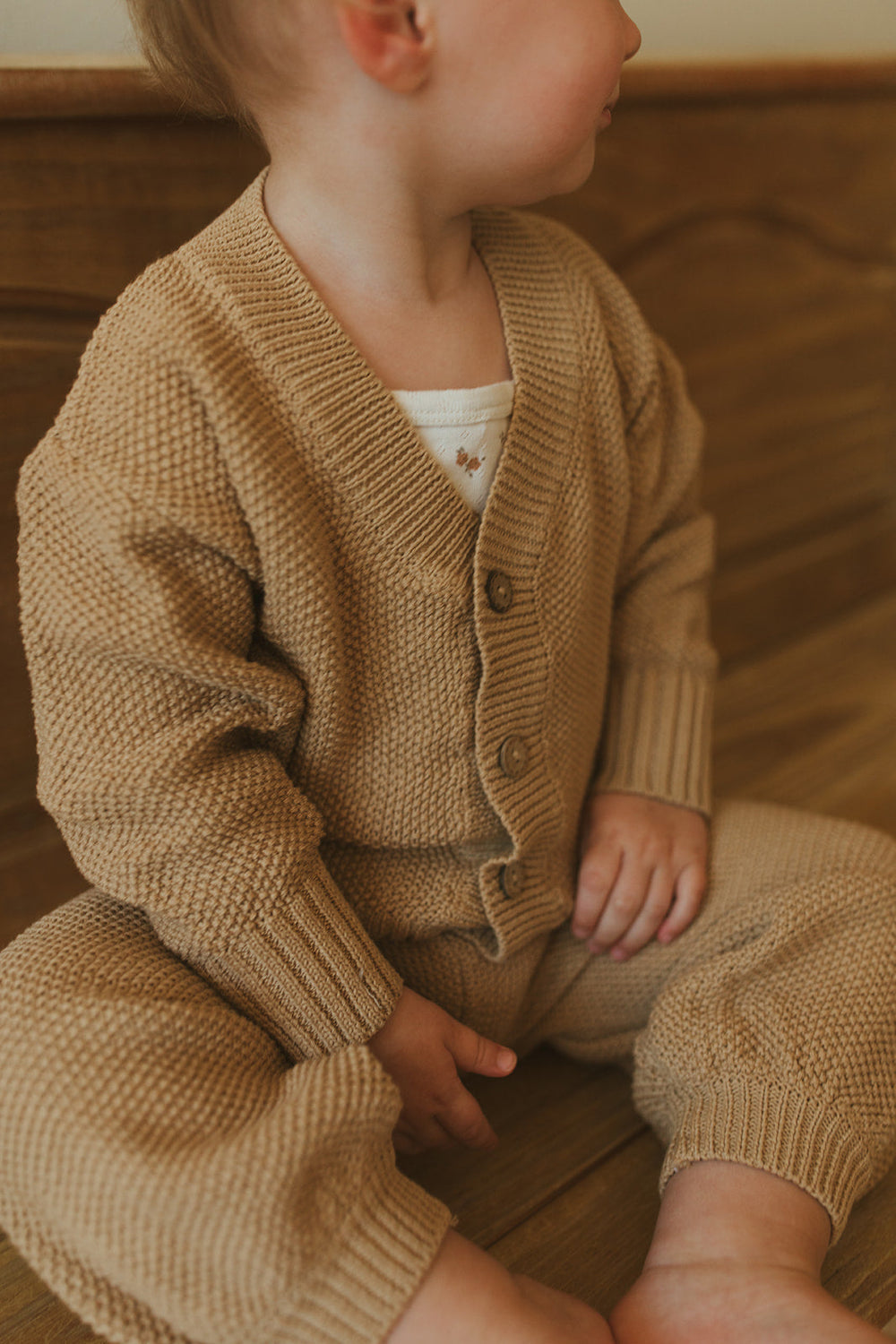 The Aspen Set is made with cozy knit cotton, perfect for keeping your little one comfortable during fall and winter playtime, naptime and everything in between.. Complete with a cardigan and jogger pants, this set is versatile for both boys and girls, making it a go-to for everyday wear or special occasions and holiday activities.