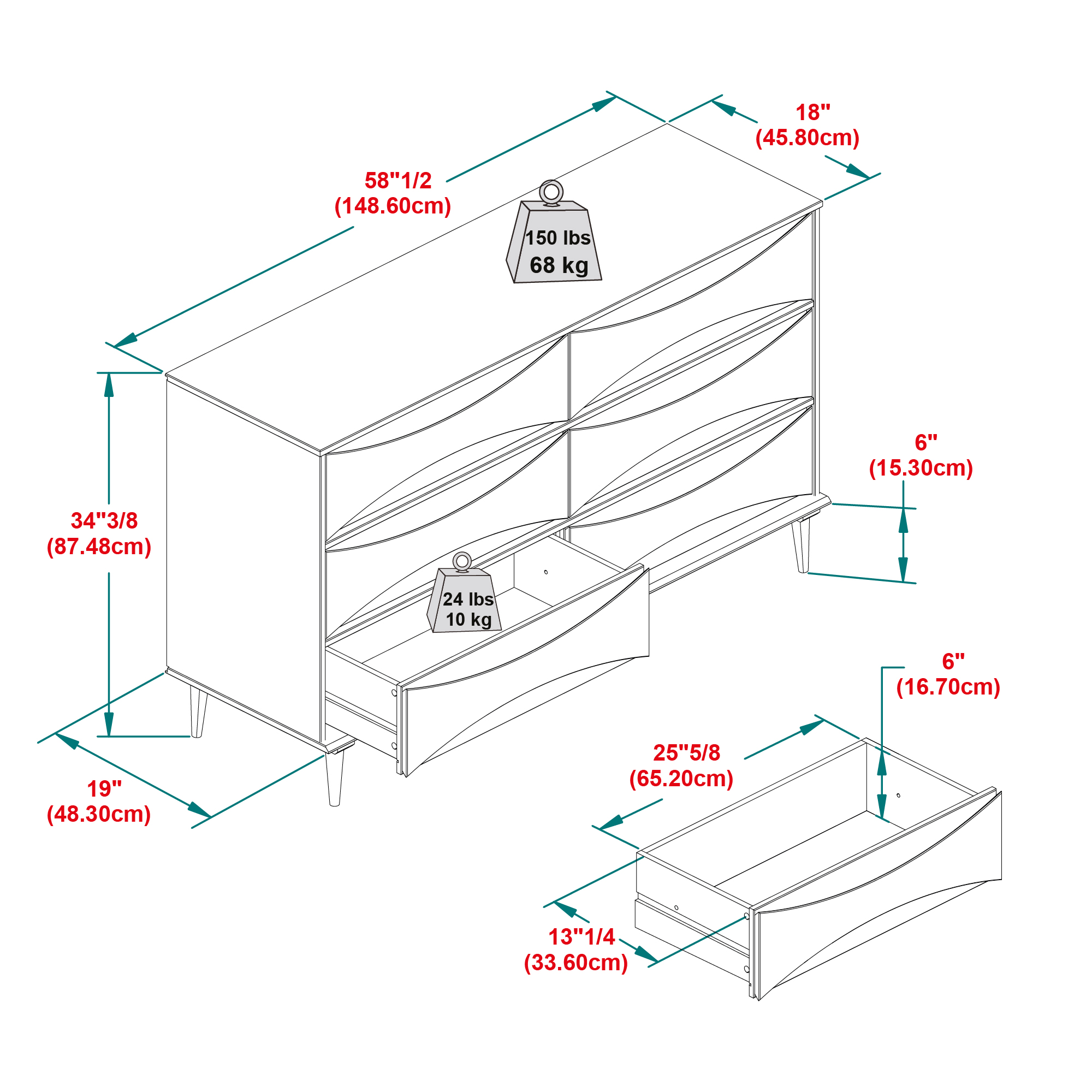 Unmistakably mid-century modern, this piece will boldly make a statement, whether you use it for added storage in the living room, TV room, or your bedroom. Spacious drawers lend a look of retro-inspired flair with their curved, beveled detail, as well as modern functionality with their spacious interiors and smooth solid wood glides. Sleek, hardware-free drawer pulls add an element of classic modernity to the piece, while its durable, responsibly sourced solid wood build and included anti-tip kit ensure that this sustainably stylish piece remains a staple in your abode for years.