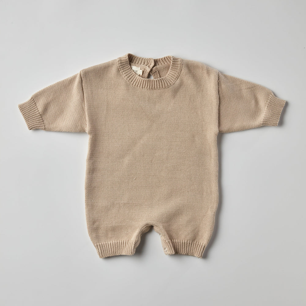 Stay comfy and stylish with our Beck Knit Romper. Made with soft knit cotton, it's perfect for babies and young toddlers from newborns to those on the move. Versatile for both boys and girls, this romper will keep your little ones cozy and cute all day long.