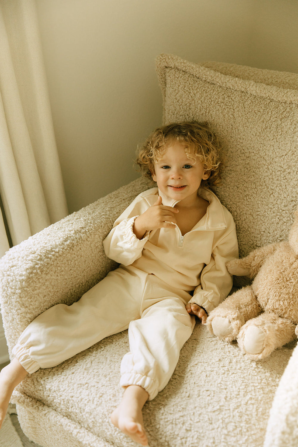 The Birch Zip Set is the perfect outfit for your active little ones during fall and winter. Made with french terry material, this set includes a quarter zip sweatshirt and jogger pants for a comfy and cute look. Perfect for both boys and girls, this set is ideal for play and rest, as well as fall and winter activities like apple picking and jumping in leaf piles.