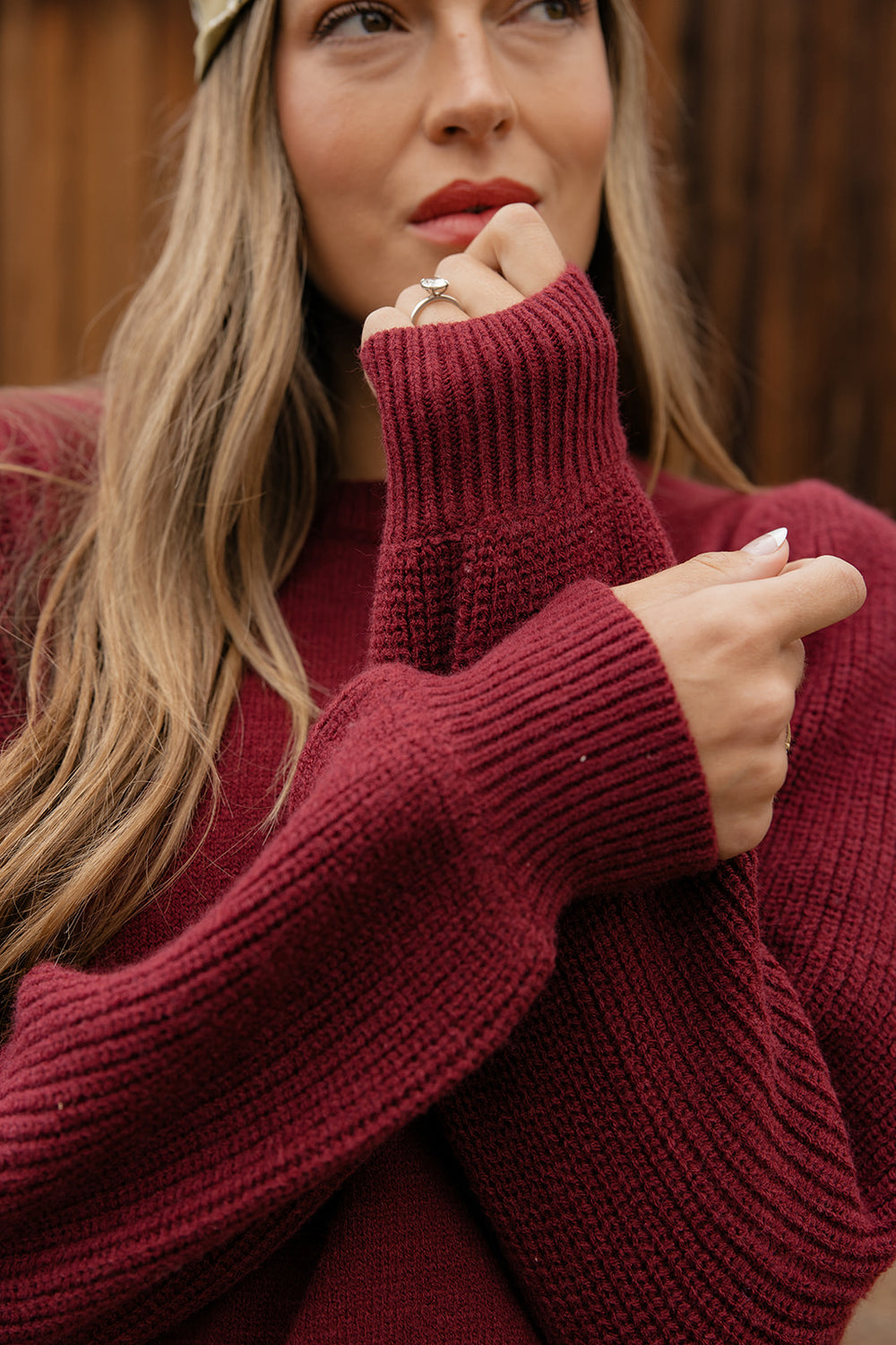 A plush, lightweight knit in a rich berry tone that feels like a warm hug. The perfect blend of comfort and polish for workdays, errands, and everything in between.