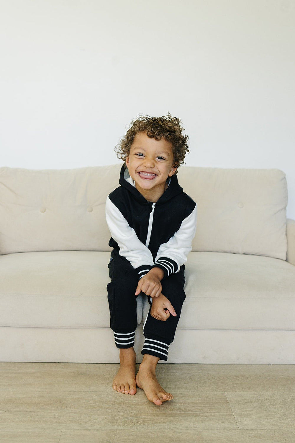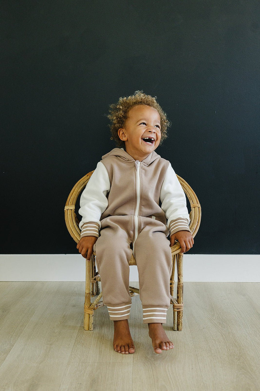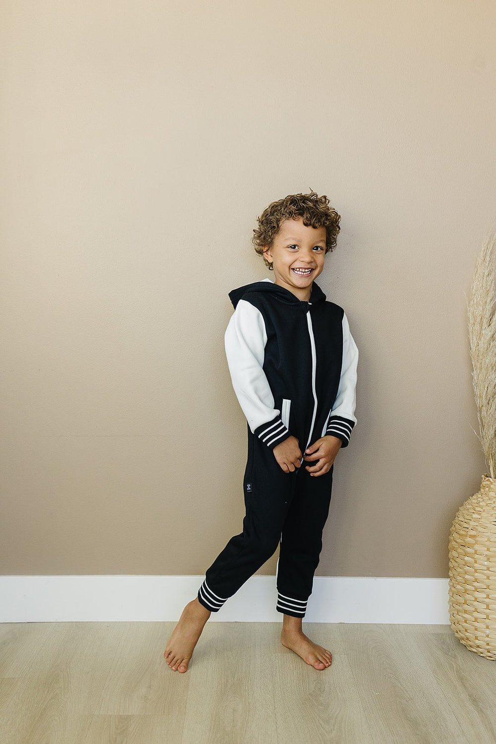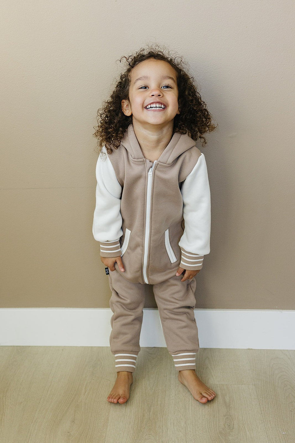 Add some "cool kid" style to your little one's wardrobe with the Brighton One Piece. With varsity jacket vibes, contrasting sleeves, pockets, and stripes, they'll be the most stylish and comfortable kid around.