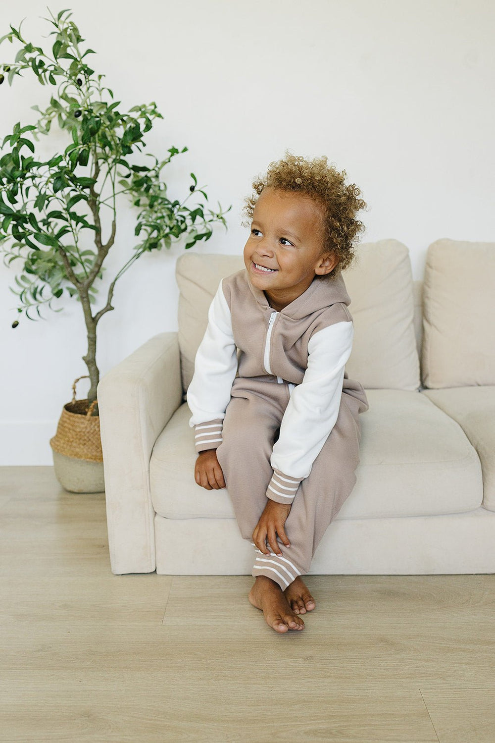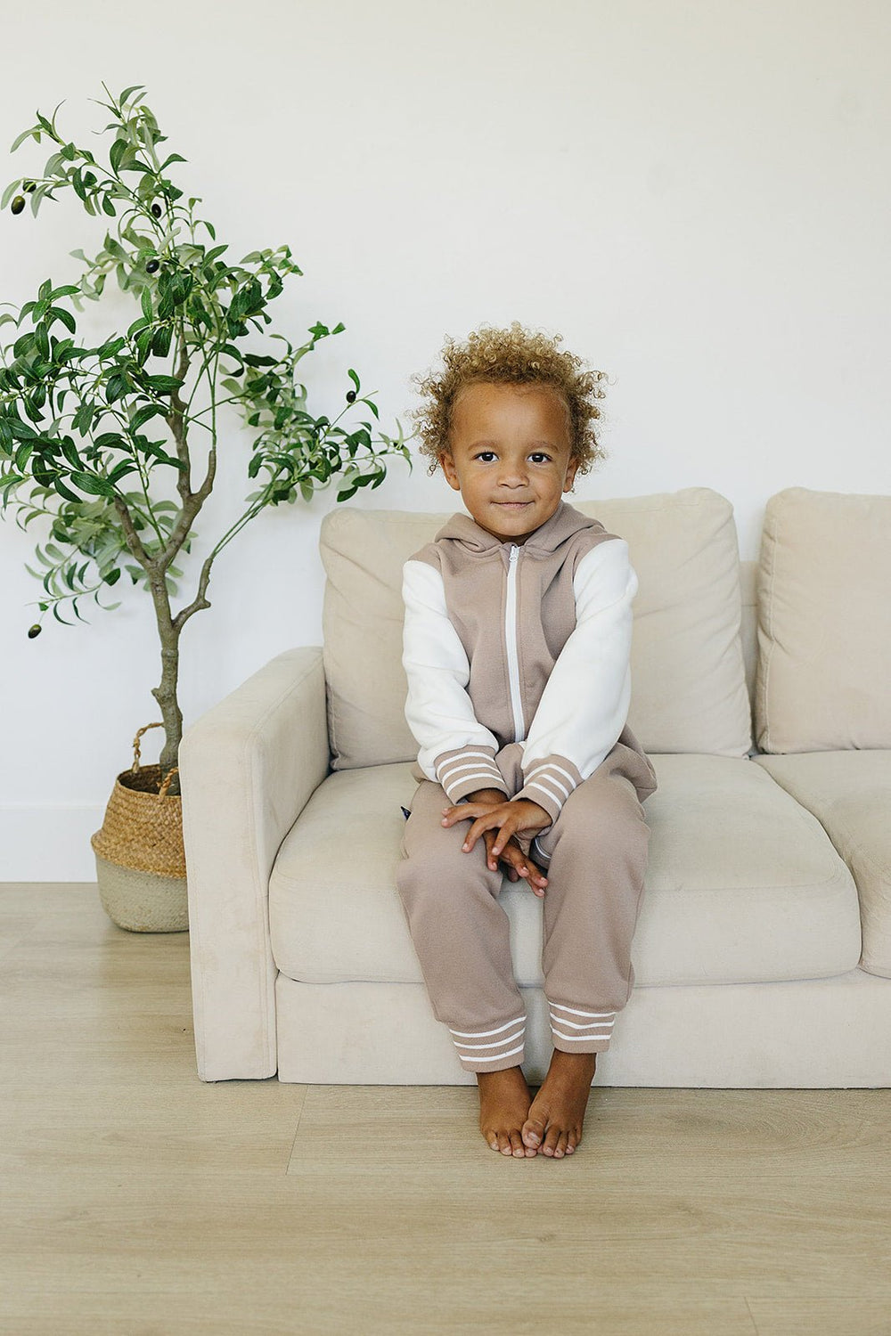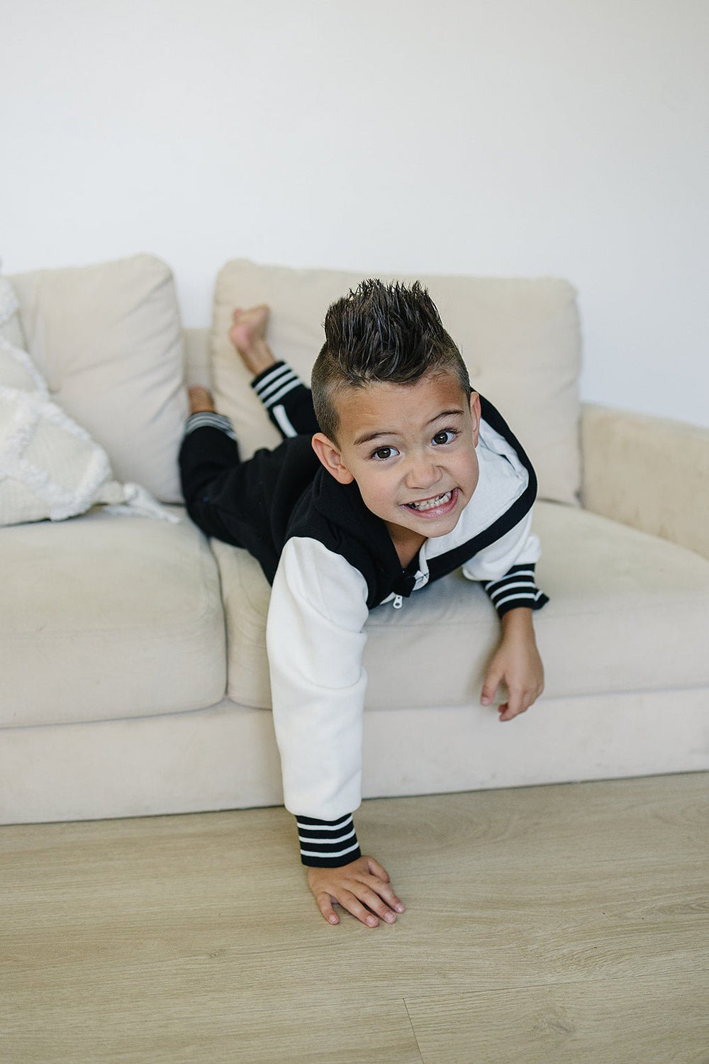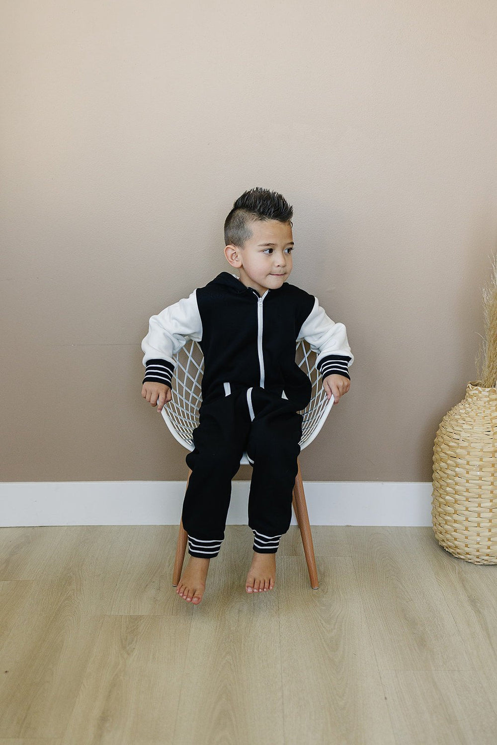 Add some "cool kid" style to your little one's wardrobe with the Brighton One Piece. With varsity jacket vibes, contrasting sleeves, pockets, and stripes, they'll be the most stylish and comfortable kid around.