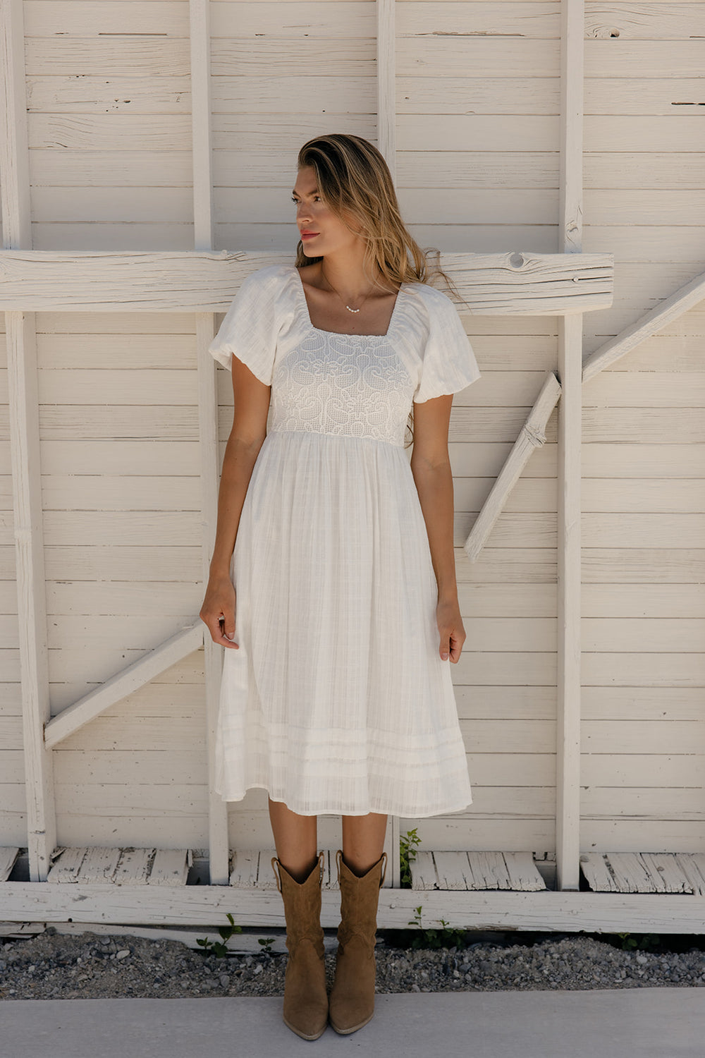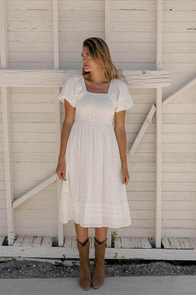 We love a classic white dress, and this one does not disappoint. Featuring a textured bodice and pockets, the Call Me Back Textured Dress is your new summer staple!