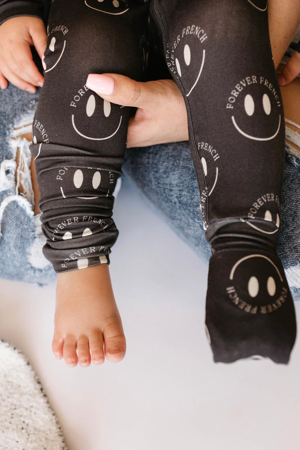 Get ready to smile all night long in our Charcoal & White FF Smile Bamboo Zip Pajamas! Made from ultra-soft bamboo material, these pajamas feature a playful charcoal background and our signature "Forever French Smile" design. Stay cozy and stylish all night long.