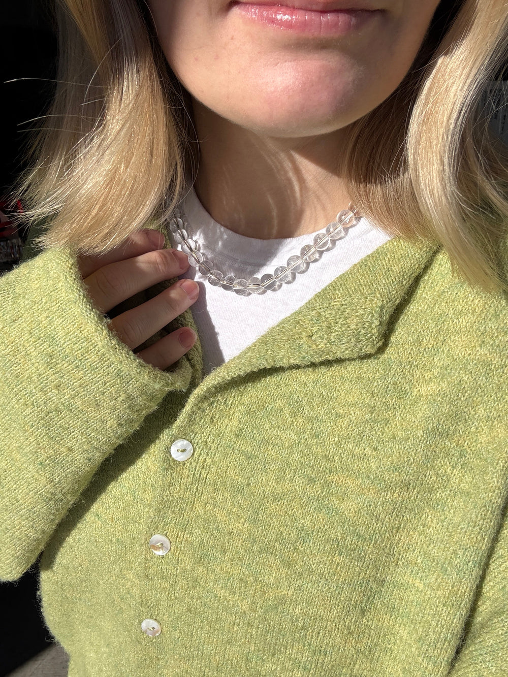 Classic, cozy, and effortlessly refined. This collared cardigan is knit from a rich, soft yarn and finished with textured buttons for a vintage feel. Wear it open over a tee or buttoned up with a satin skirt โ€” itโ€™s the sweater that makes every...