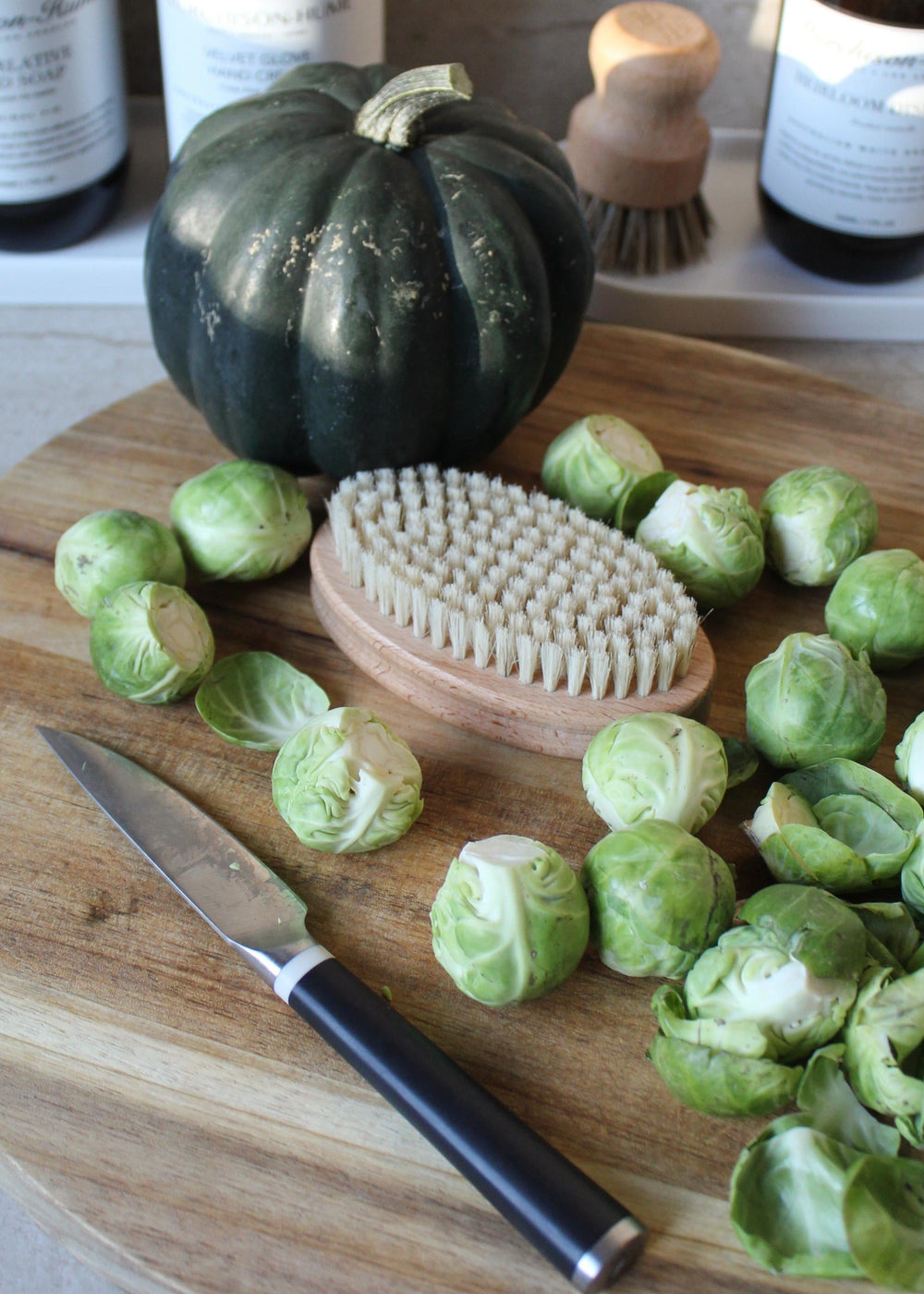 Made from oiled Beech Wood and natural bristles.
