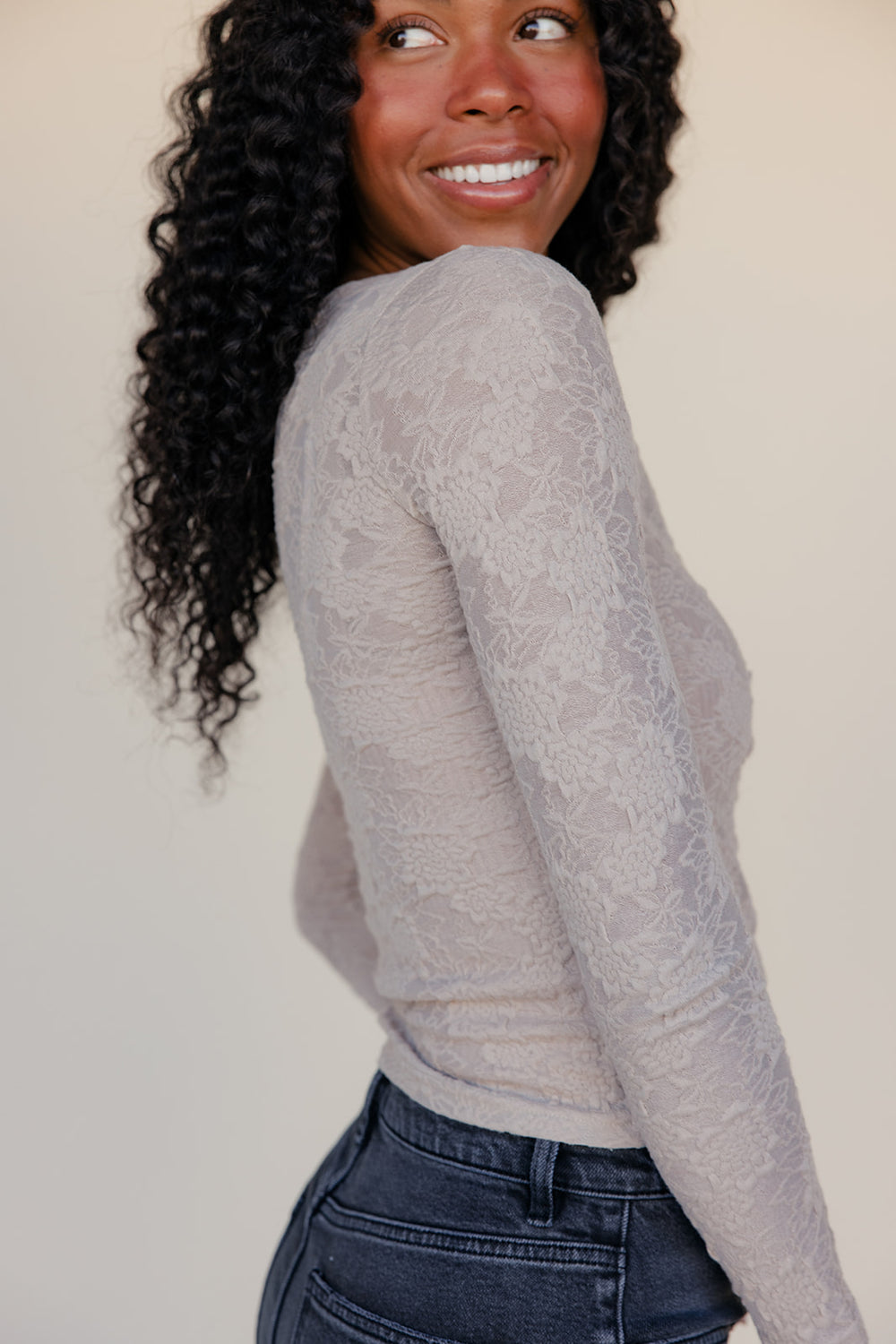 Delicate and feminine, the Cora Lace Top features intricate lace detailing with a slim silhouette that layers beautifully under jackets or stands out on its own.