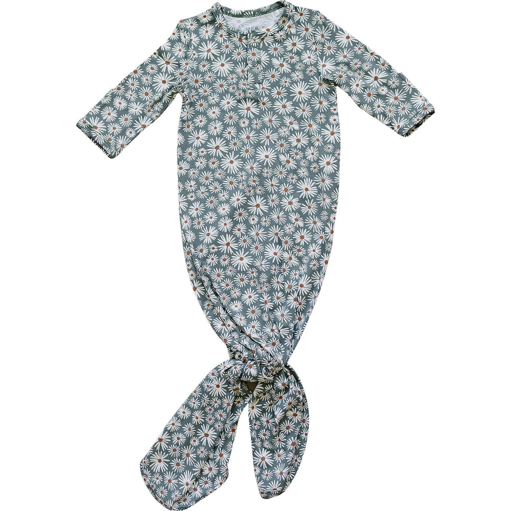 These gowns are size 0-3. They are made out of supremely soft Bamboo Rayon to keep your little one comfortable. We have a variety of gender neutral designs and colors making them perfect for any baby. They have fold over hands and two snaps for easy on and off. We also have shoulder flaps to make it easily pull over your little ones head, we want to make dressing your baby as easy as possible. The bottom is easily tied and untied in a knot for no-fuss diaper changes which makes it a newborn baby essential! These are made out of the same fabric as our stretch swaddles and match the colors of the stretch swaddles, head wraps, and hats.