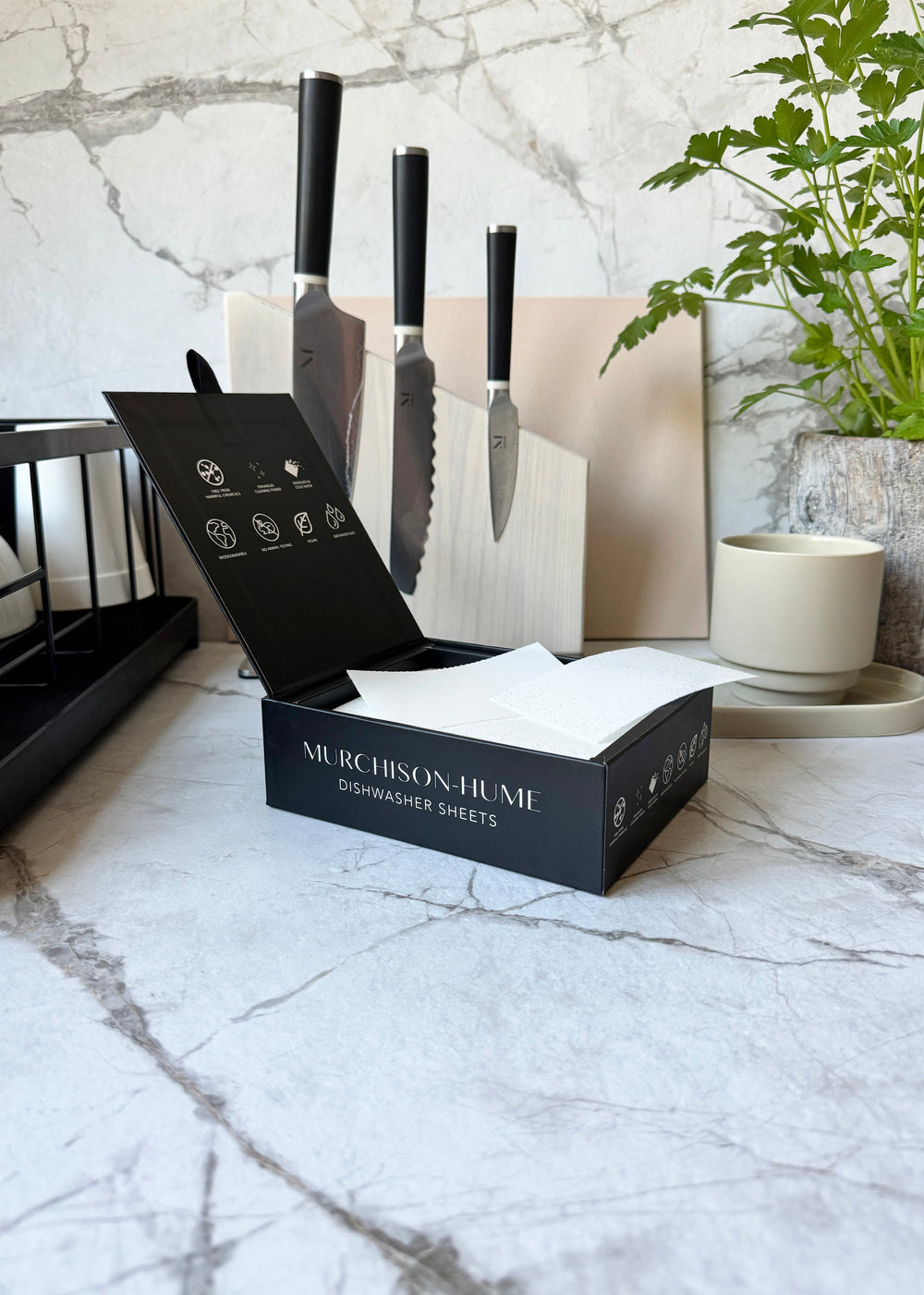 Introducing Murchison-Hume Dishwasher Sheets – your sustainable solution for spotless dishes without harmful chemicals. Our plant-based sheets dissolve in cold water, making them gentle on the environment and perfect for all automatic dishwashers. Experience enhanced cleaning power with our biodegradable, cruelty-free, and vegan formula. Compact and convenient, they're ideal for home, travel, and holidays. Make the switch today for a cleaner, greener dishwashing experience.