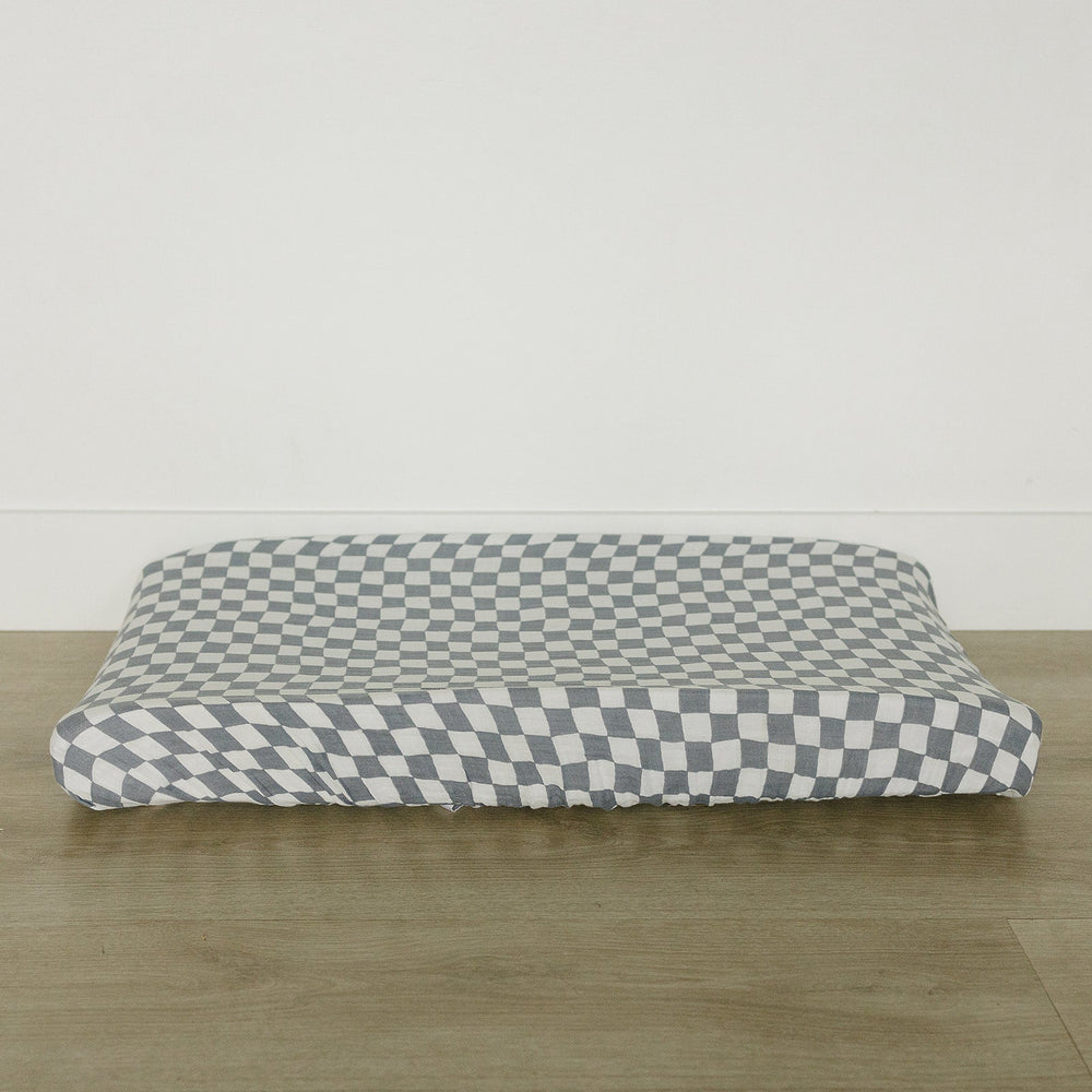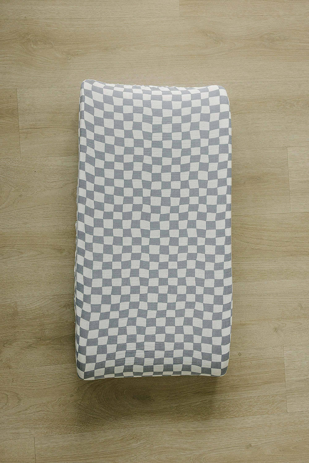 Transform your baby's changing area with the Mebie Baby Dusty Blue Wavy Checkered Muslin Changing Pad Cover. Made from soft and breathable muslin fabric, this cover is gentle on your baby's skin. The checkered design adds a touch of modern style to your nursery decor. The elasticized edges ensure a snug fit on standard changing pads, keeping your little one comfortable during diaper changes. Machine washable for easy care, this changing pad cover is a must-have for any parent looking to combine functionality with fashion.