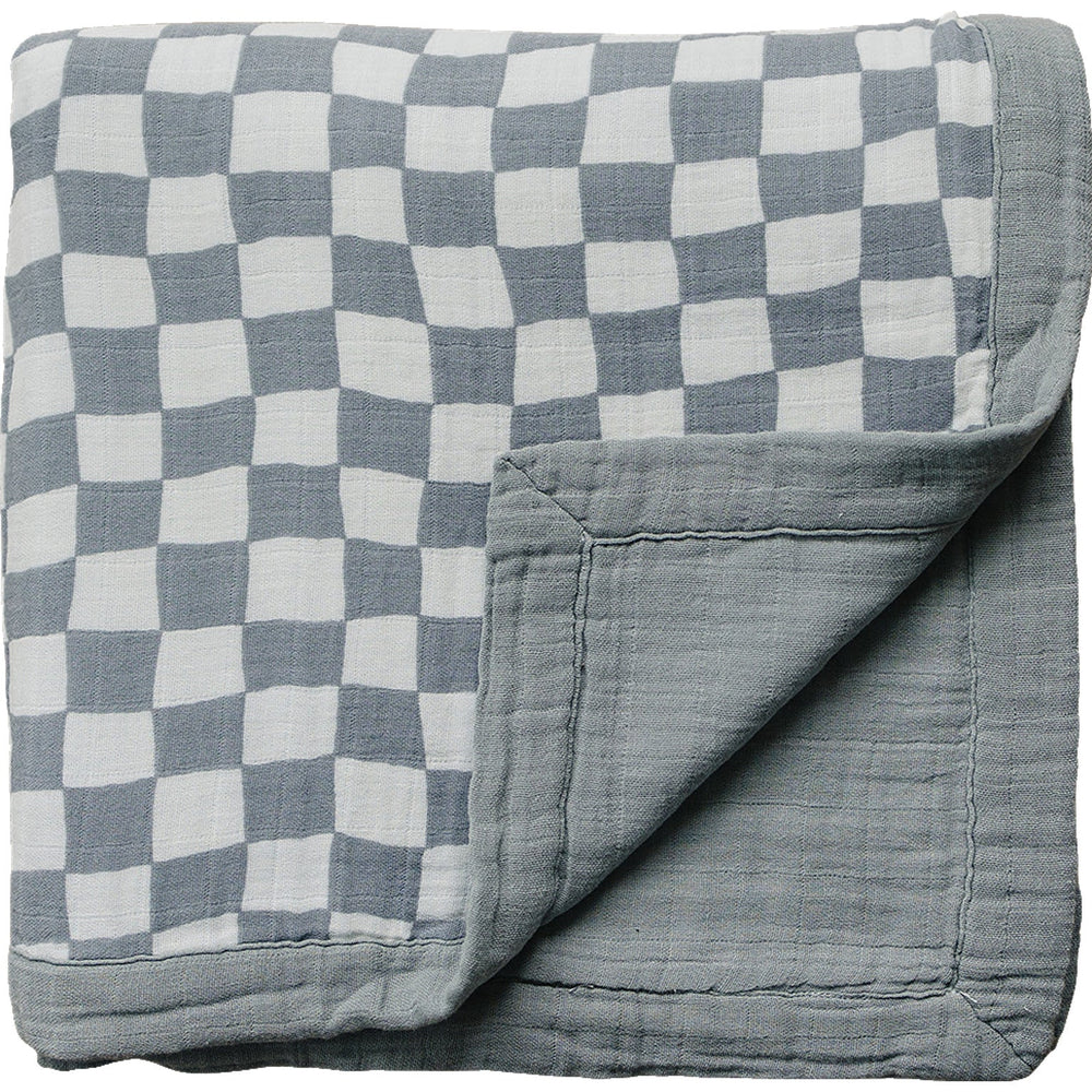 Introducing the Dusty Blue Wavy Checkered Muslin Quilt for babies and toddlers, a standout in our renowned muslin quilt collection. Crafted with four layers of soft, breathable muslin, this quilt provides the perfect mix of warmth and comfort for your little one, in any season. The distinctive Dusty Blue Wavy Checkered pattern adds a modern flair to any nursery or toddler room. This quilt is not only lightweight and cozy but also designed for easy care, becoming softer with each wash. A favorite among parents, it combines style, durability, and everyday practicality for your baby or toddler.