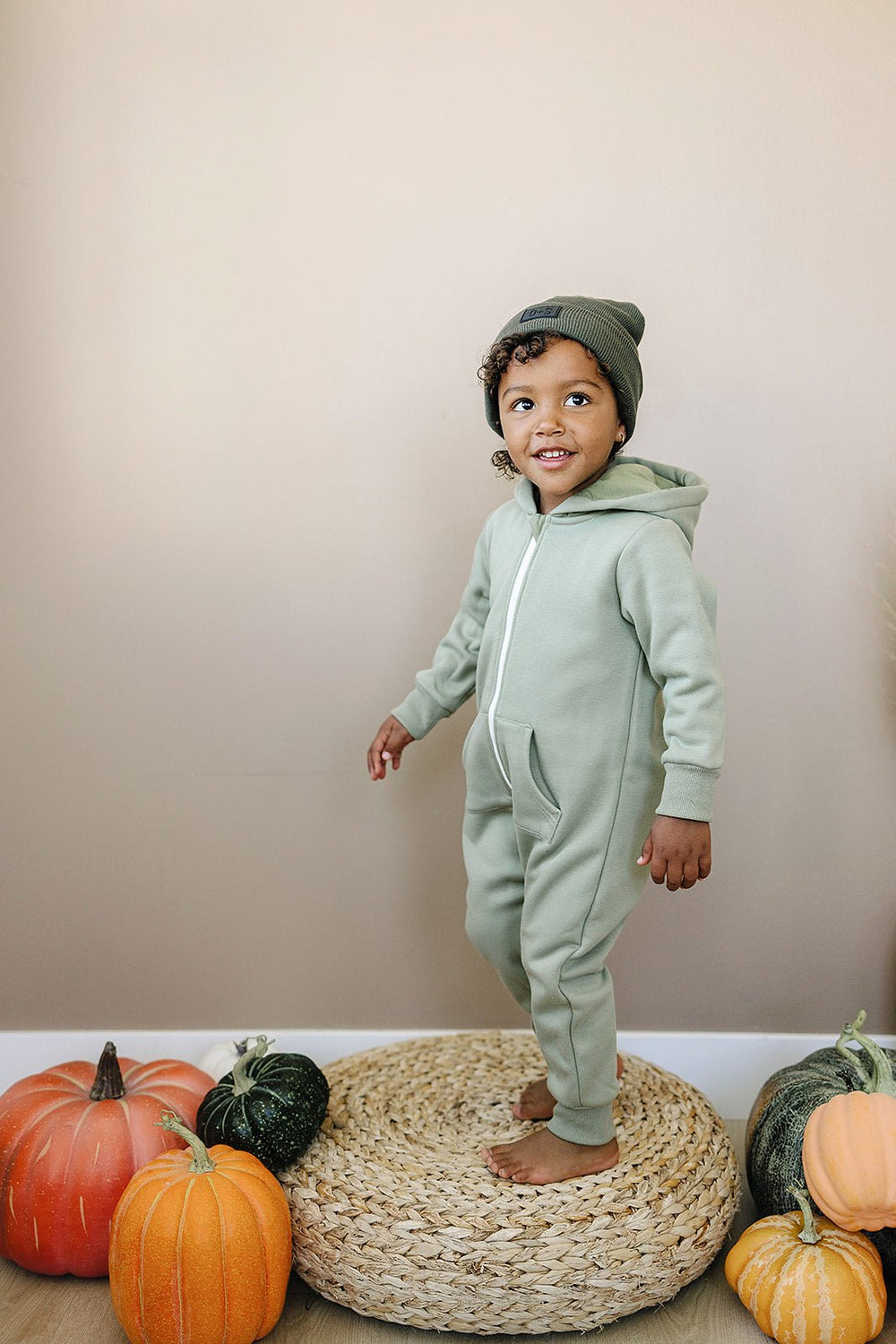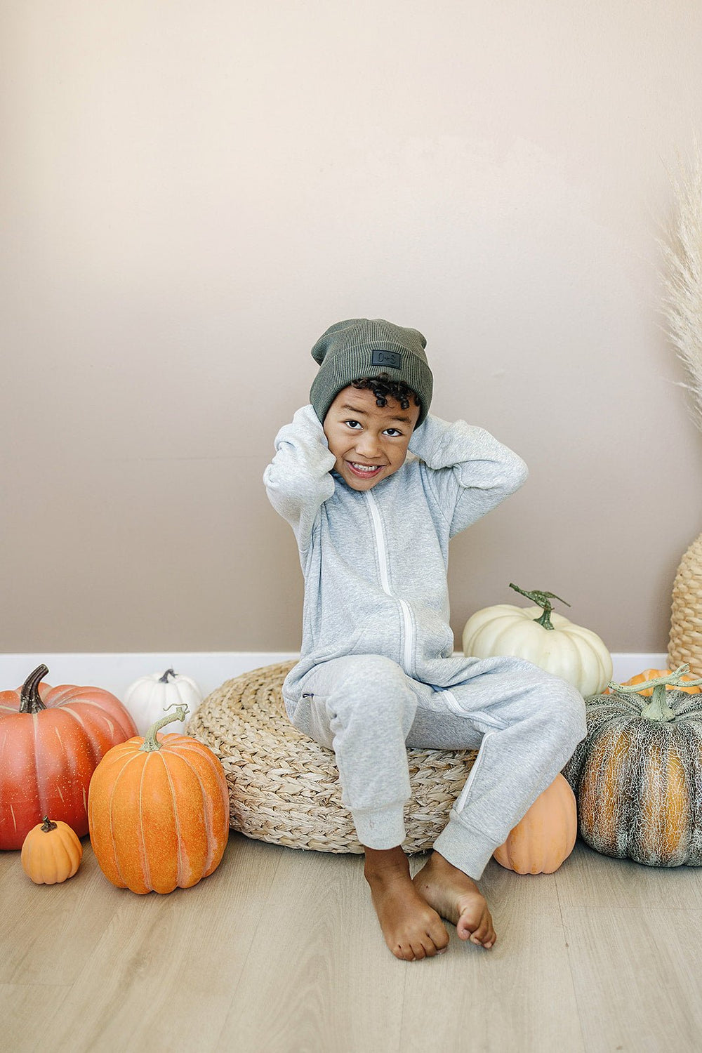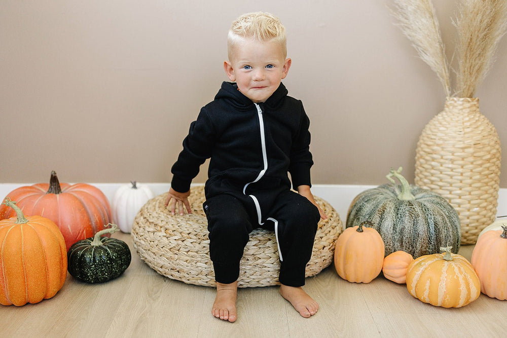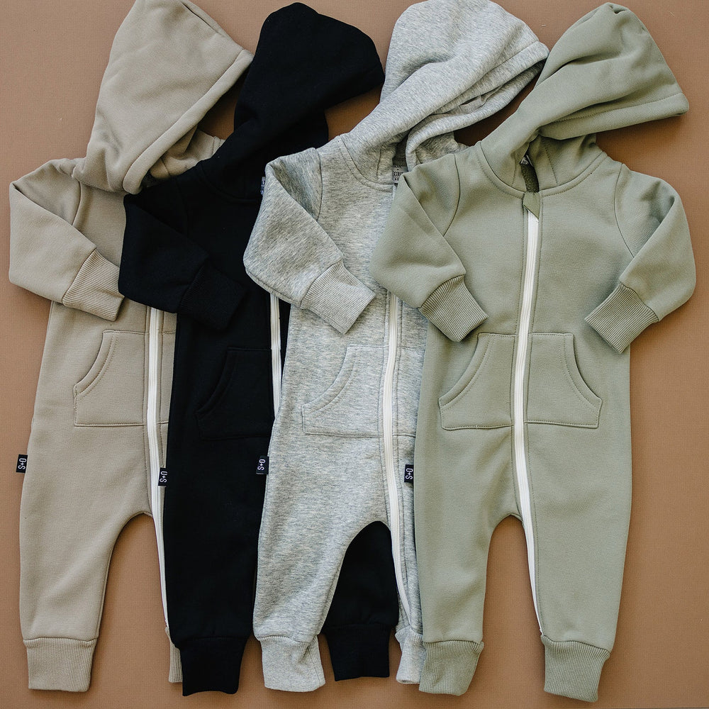 The Dylan One Piece is back and in three new colors! This cozy one piece sweatsuit is perfect for lounging around the house, with a full length zipper for easy on/off and kangaroo pouch pockets on the front for all their stuff. Plus, it features a hood to keep them warm and looking fly when they're out and about!