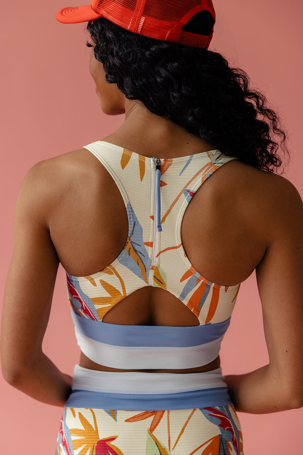 The Eden Cut Back Crop is so good! It gives you max support like your fave sports bra, so you can move freely. The quick-drying fabric keeps you comfy, and the racerback style with a zipper is super cool. The scoop neck is flattering, and the wide double band gives extra hold. Plus, that bold print? Total showstopper.