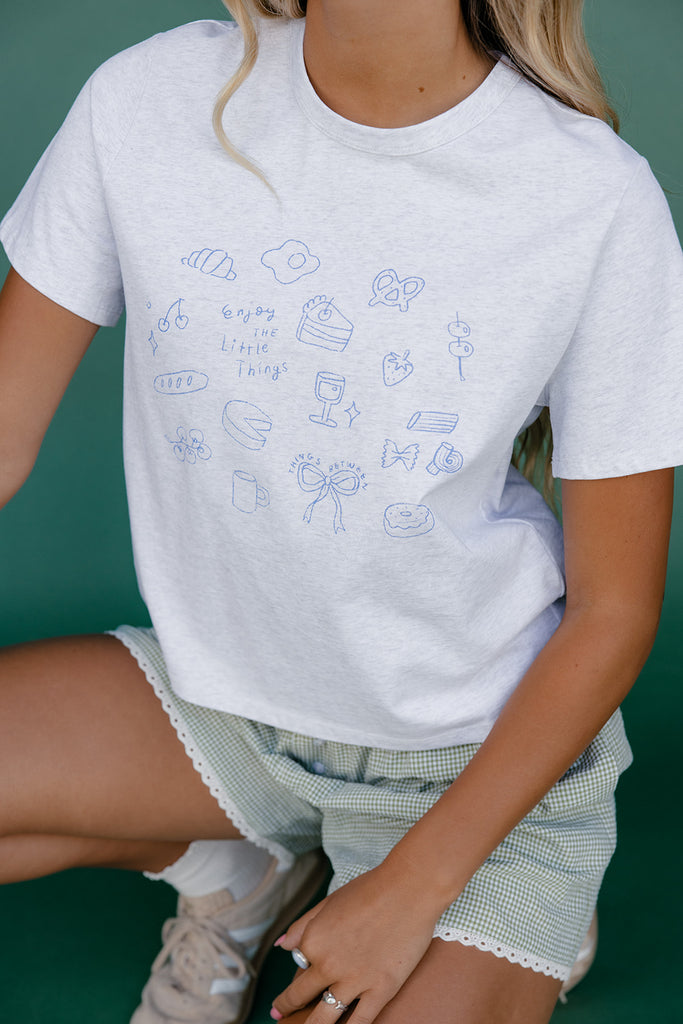 The cutest graphic tee is here! Featuring a little picnic on your shirt, the Enjoy The Little Things Tee is a cute take on a classic graphic.
