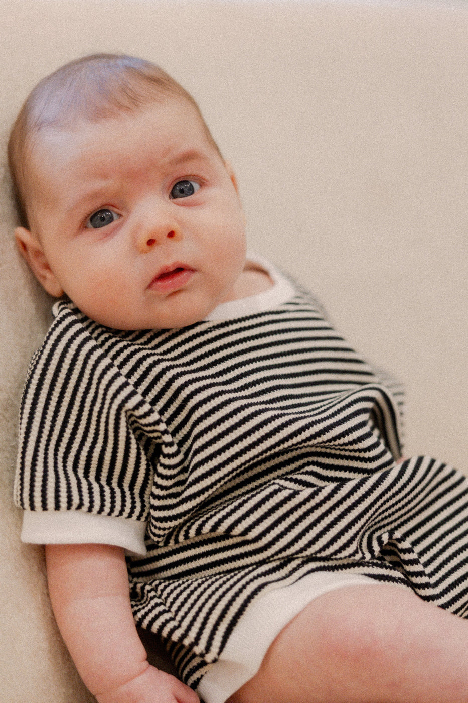 Stay cozy and stylish with our Ezra Waffle Knit Romper! Made from soft waffle knit material, this romper features an oversized fit for maximum comfort. Its neutral color makes it versatile for any occasion, making it a must-have for your baby's wardrobe.