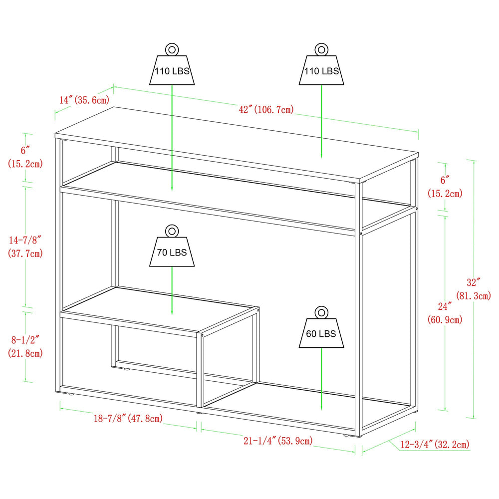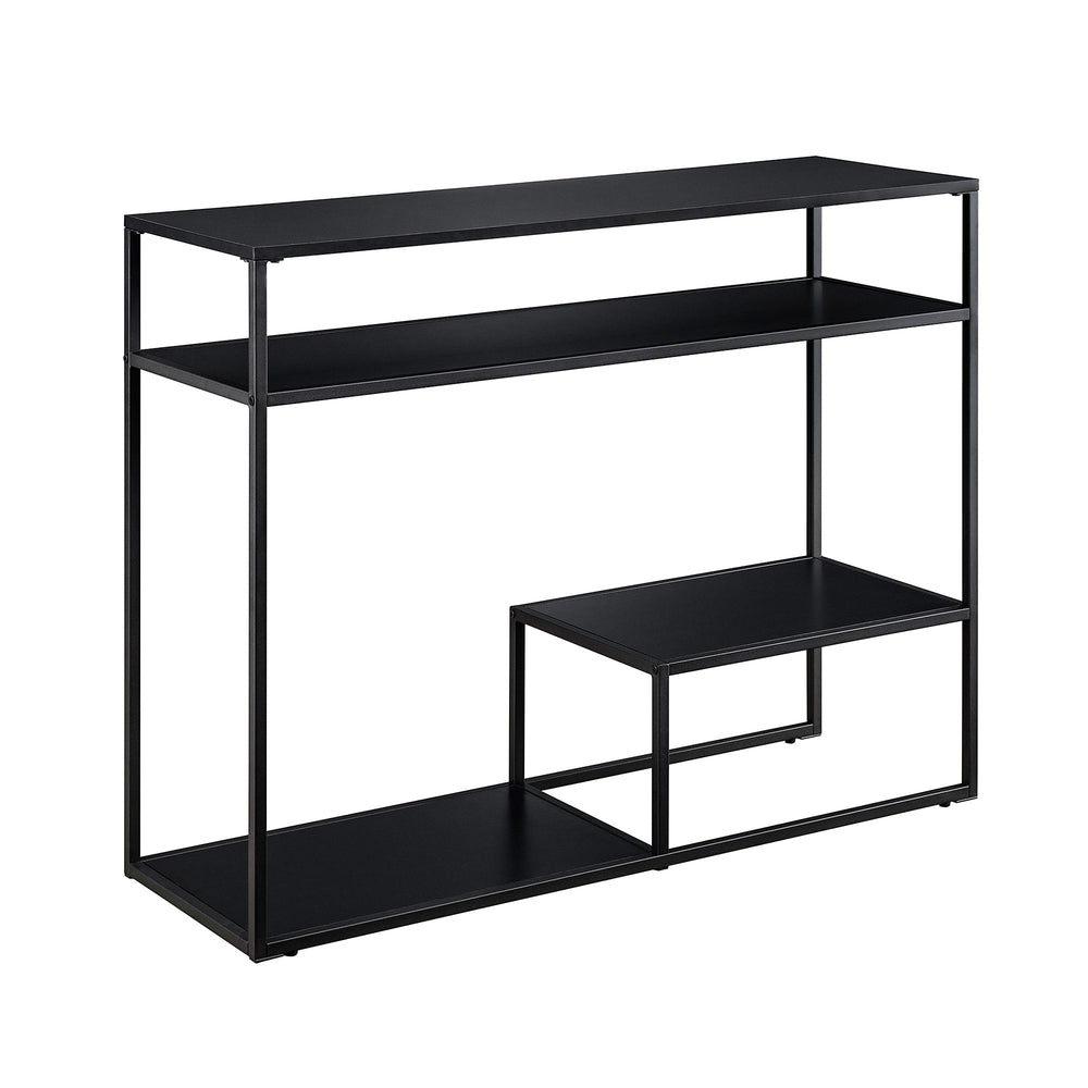 Stack up on style with the Modern 3-Tier Rectangle Console Table. This entryway must-have is an urban take on practical storage, giving you even more room to store the essentials or display your taste in décor. The sofa table's metal box frame looks just right in any contemporary home, while the MDF and laminate shelves and tabletop give you a sleek surface for picture frames, flower vases, and holiday décor.