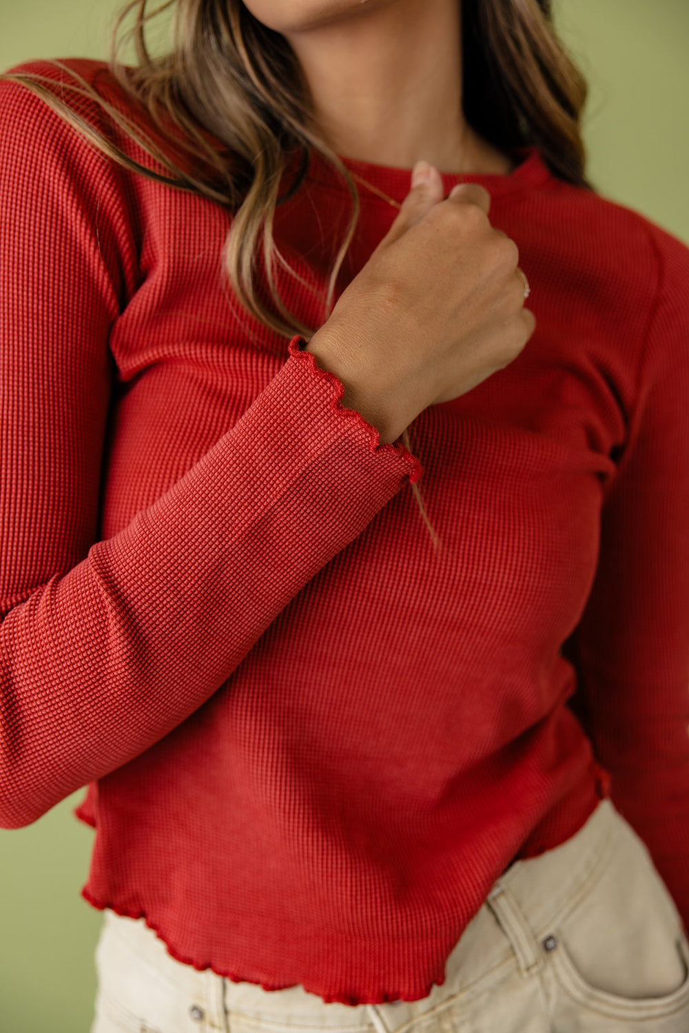 This cozy long sleeve has rounded lettuce-edge hems and raglan sleeves for a stylish look that delivers every time. The seams are defined, and the fabric is stretchy, so it moves with you. Perfect for any day, this tee is a must-have in your closet.