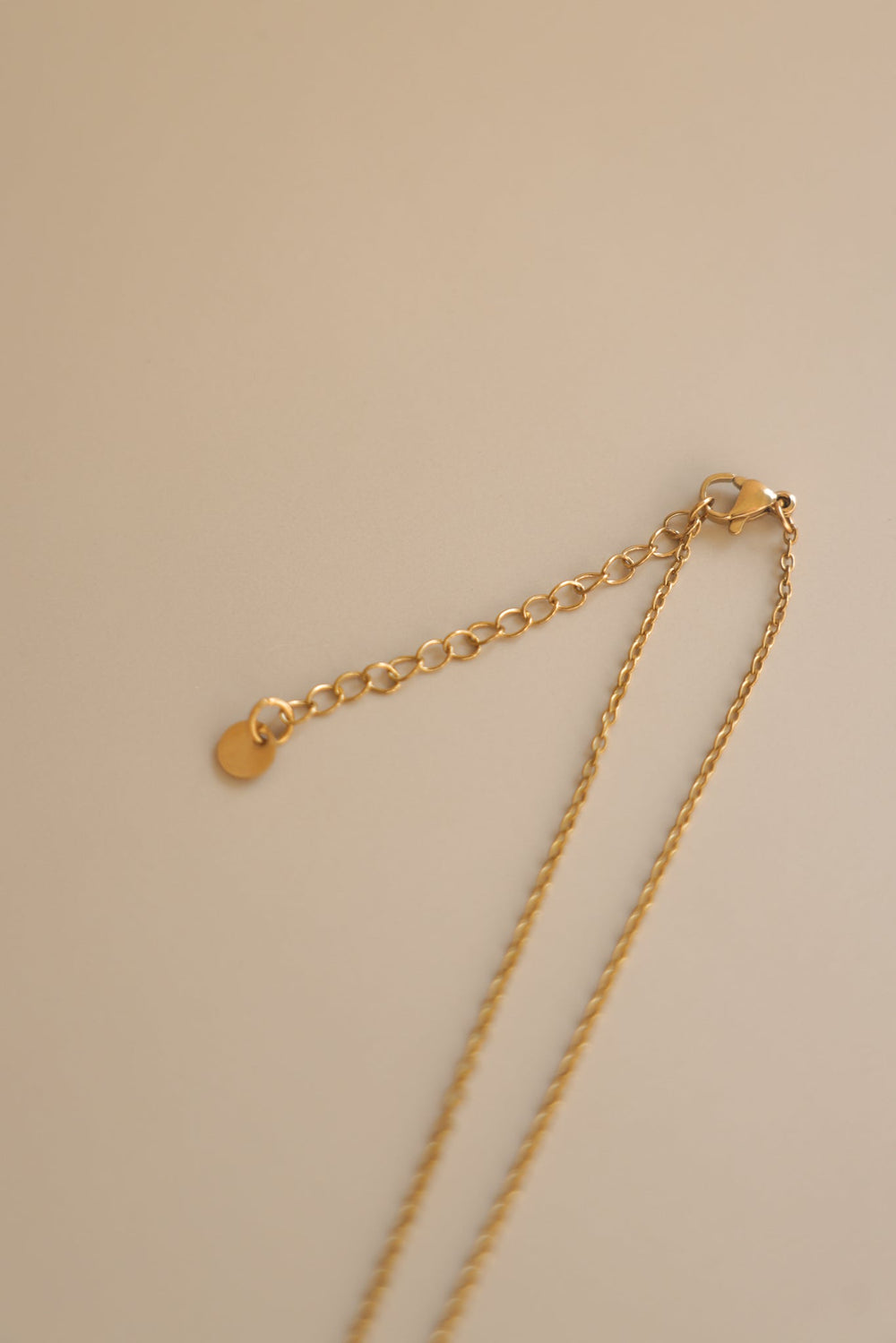 Handcrafted from gold filled chain, (optional) 2" extender chain, lobster closure, and 5mm potato pearl pendant.