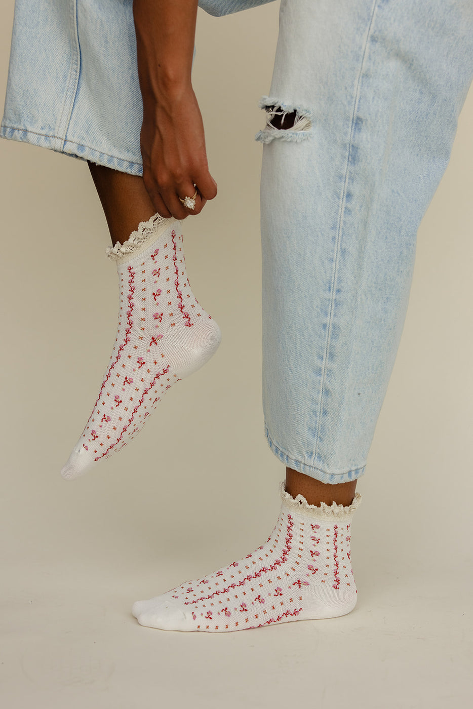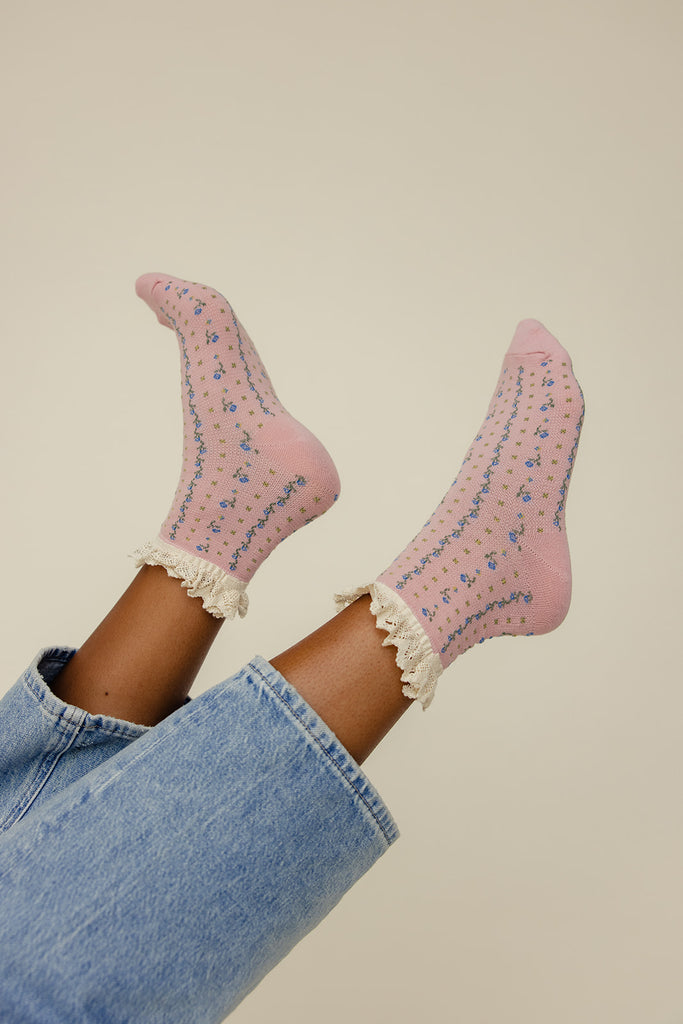 What a perfect addition to any outfit - the Green Thumb Floral Socks feature darling florals and the cutest frills.