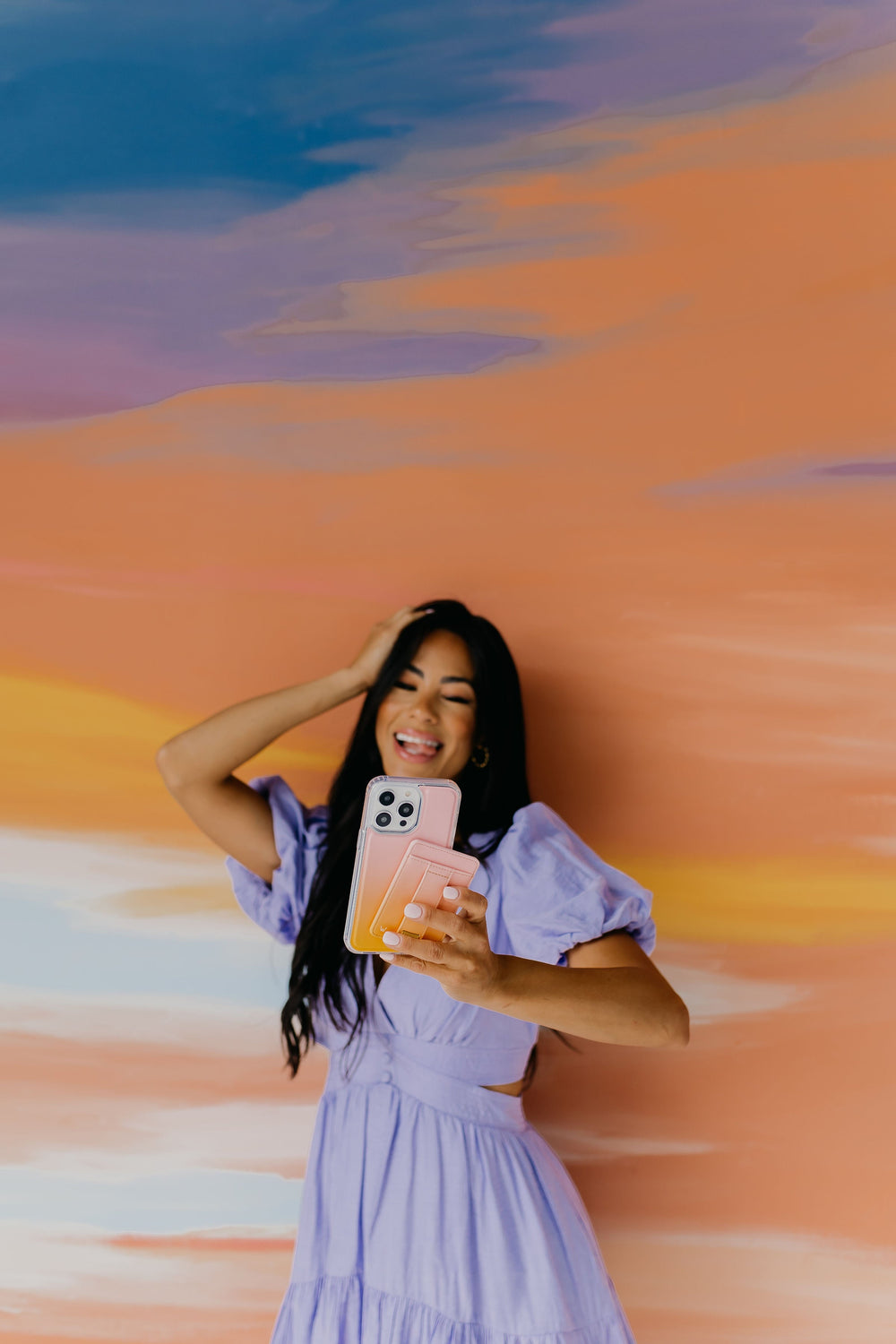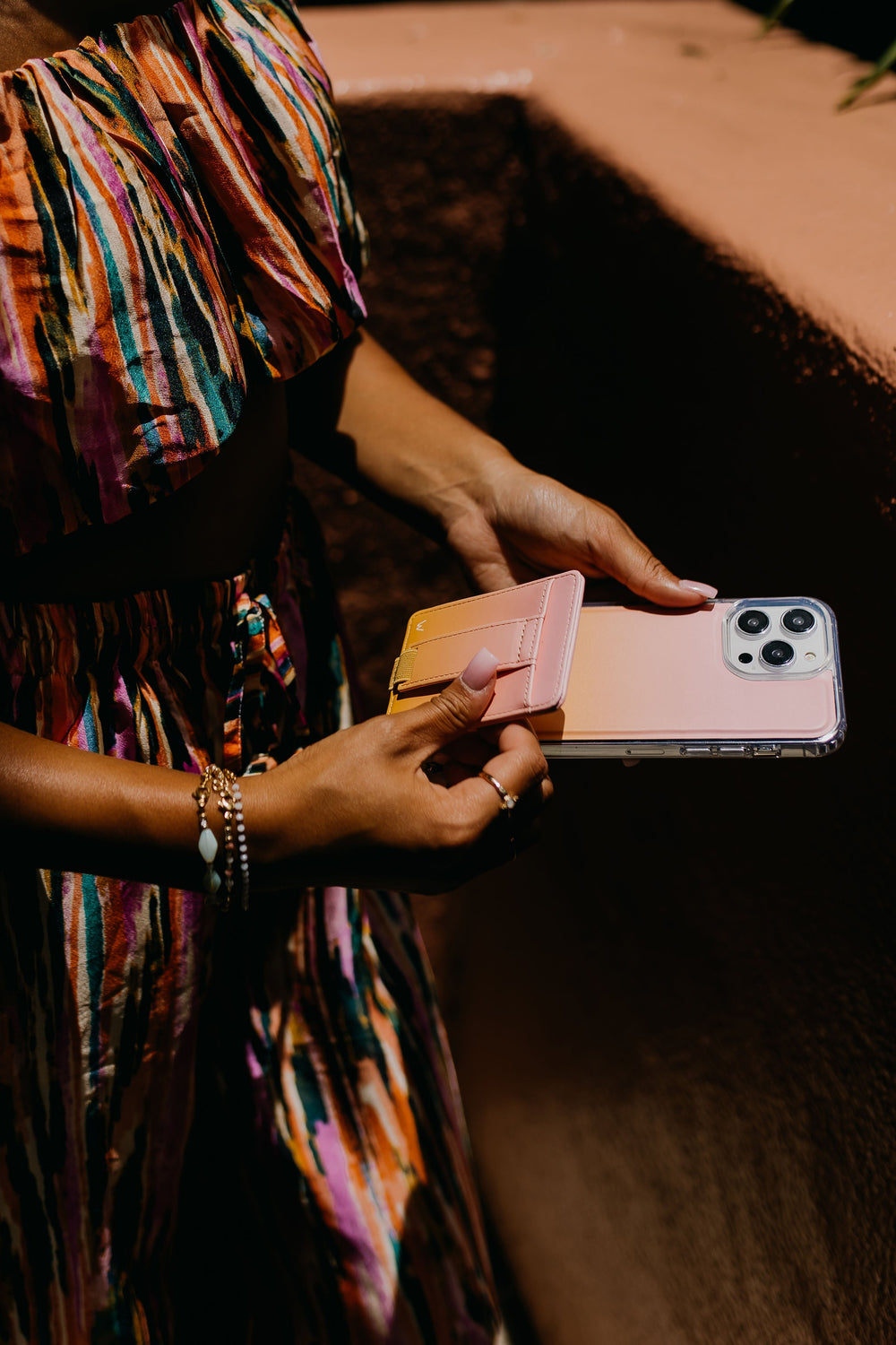 This ombré design is sure to brighten your day, complete with a magnetic detachable wallet design.