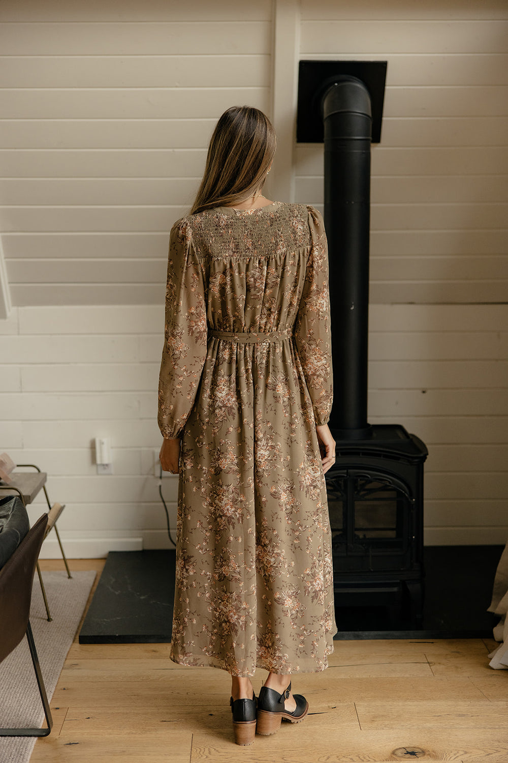 A nostalgic floral print brings the Hearthside Dress to life. Finished with a waist tie, fluttery skirt, and soft long sleeves—this dress is cozy, feminine, and perfect for seasonal gatherings.