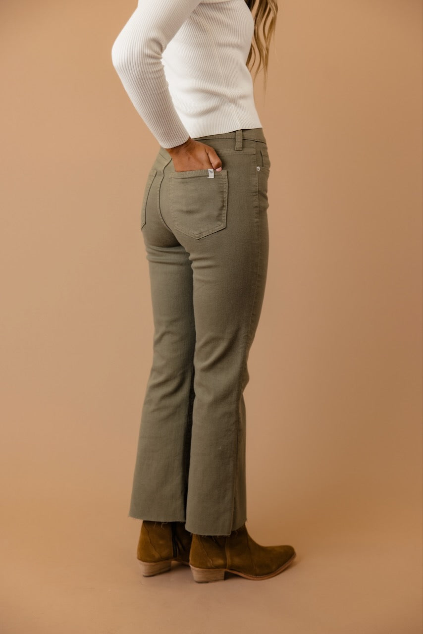 Featuring a high rise silhouette and a wide, cropped flare leg, these pants are an essential in any closet. Complete with a raw hem and the perfect amount of stretch, these pants are sure to become a staple.