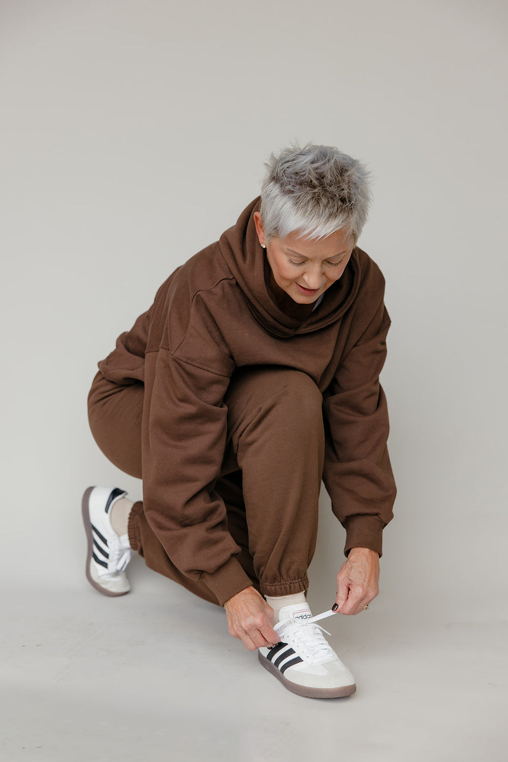 Your new off-duty favorite. These mocha sweatpants pair perfectly with the In Motion Hoodie, offering a flattering tapered leg, soft stretch feel, and easy all-day comfort.