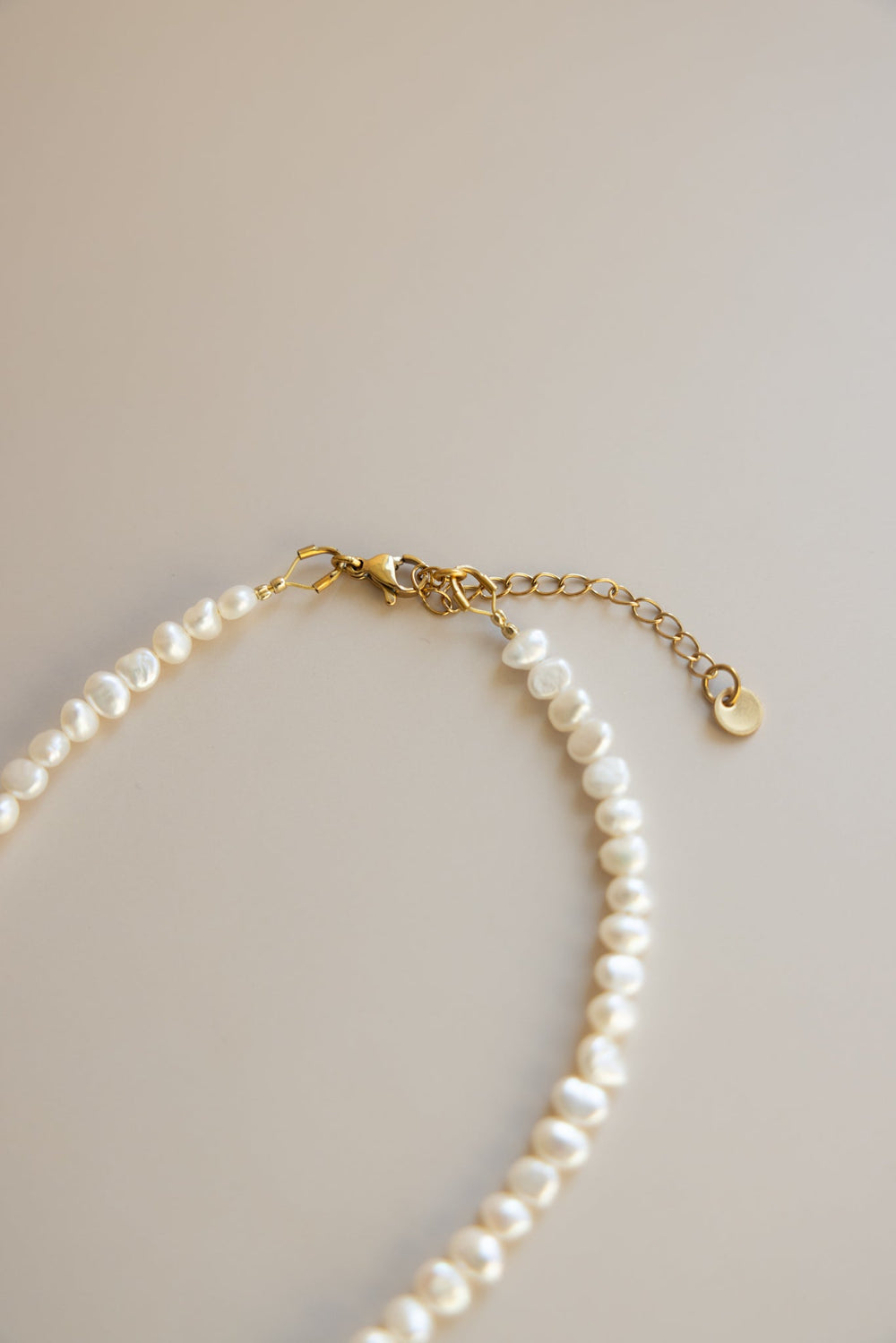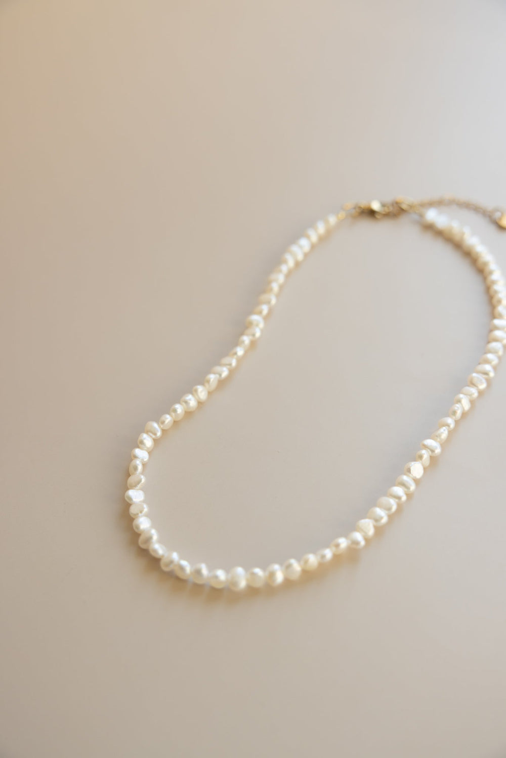 Handcrafted from 4-5mm genuine irregular freshwater pearls, and 6mm gold filled lobster closure and 2” extender chain.