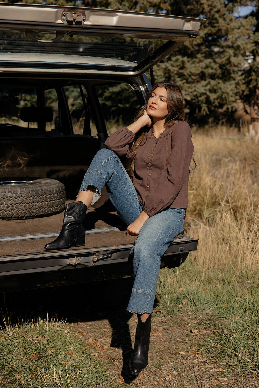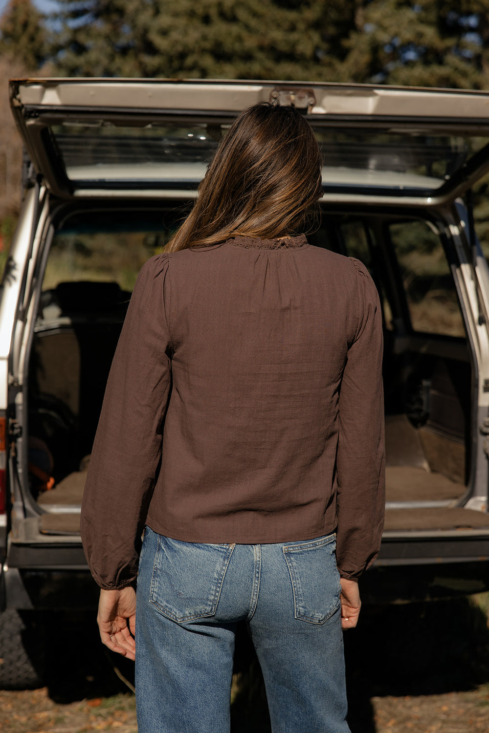 A beautifully detailed blouse featuring delicate lace, soft long sleeves, and a flattering drape. Perfect for dressing up denim or pairing with skirts for a polished look.
