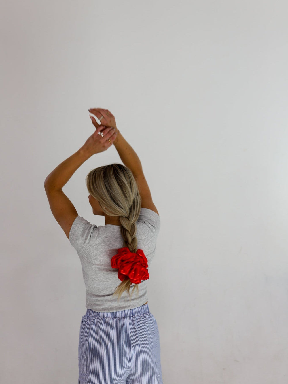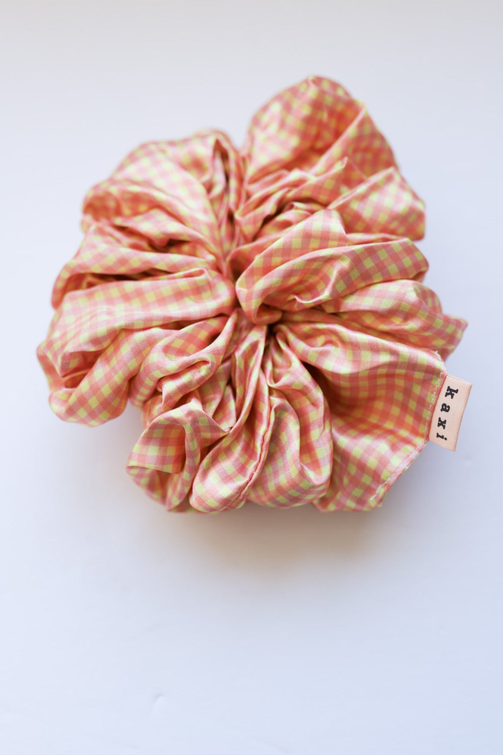 The easiest way to improve hair health? Sleep in a kaxi sleep scrunchie! This scrunchie has significantly more material than a normal sized scrunchie which protects your hair all night long. They are specifically designed to sleep in because of the soft silk/satin blend material it is made of. Silk helps hair retain natural hair oils, and also helps minimize tangling, and breakage while tossing and turning at night. Sleep with it in a LOOSE low pony, side braid, or high pony/bun above your head as you sleep.Â