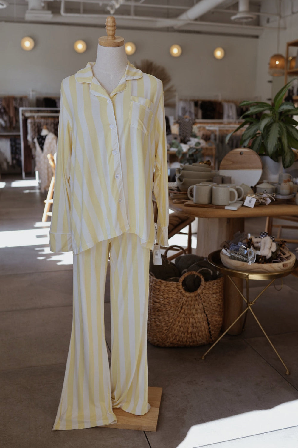 Say hello to your new favorite set. Our women’s bamboo lounge set just got an upgrade — now featuring a long-sleeve button-up top, designed for an effortlessly relaxed look and feel. Paired with our signature slight flare lounge pants, this set brings the perfect mix of comfort and elevated everyday style.