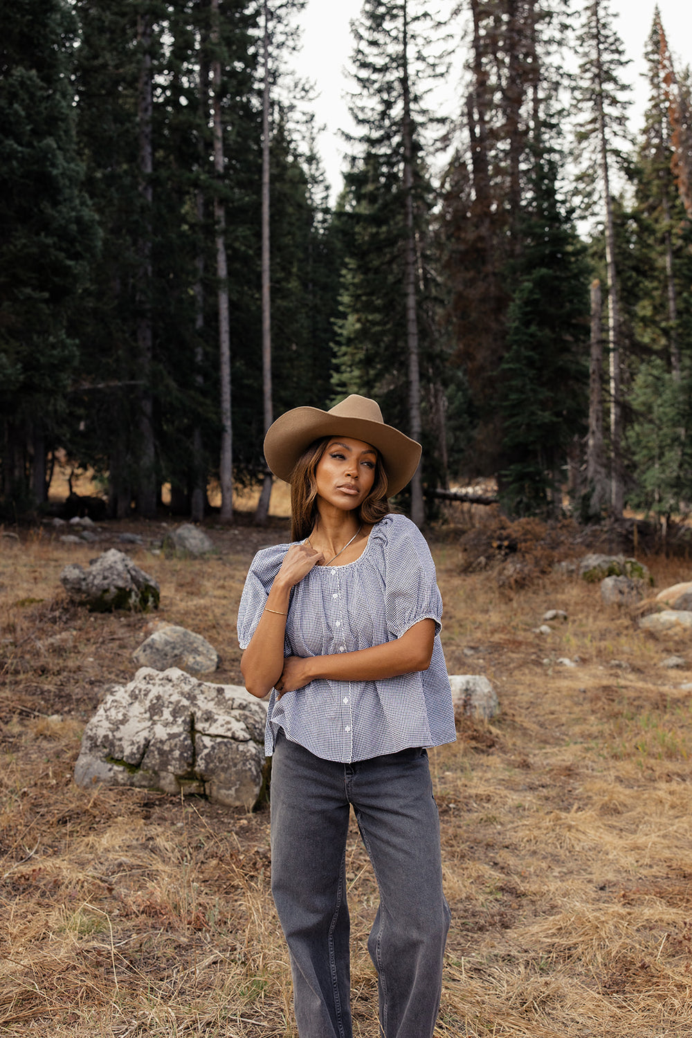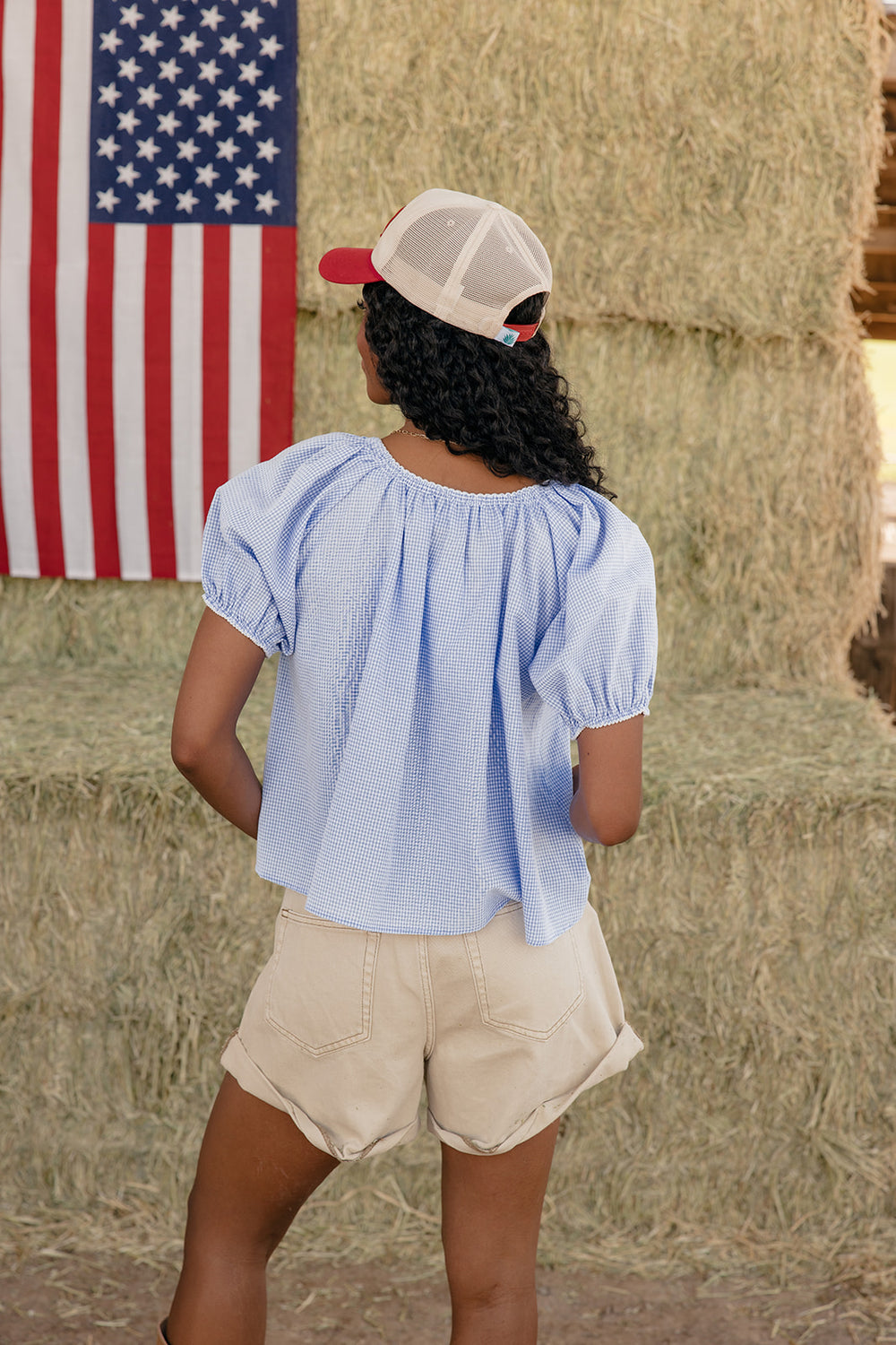 The perfect red gingham blouse is finally here! Featuring a scoop neck, puff sleeve, and functional buttons, the Long Stem Roses Blouse has all the Fall vibes!