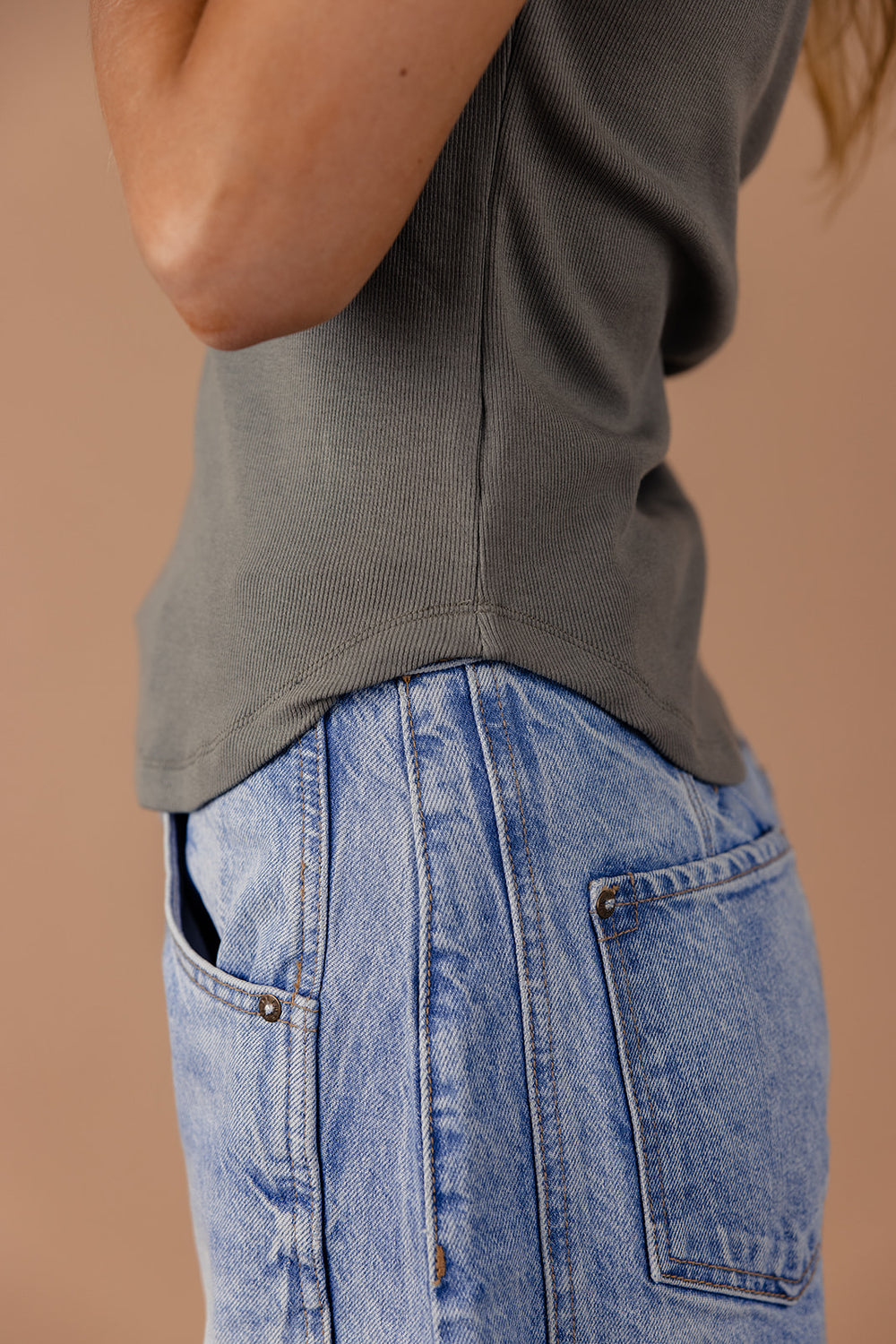darkolivegreen // paired with the free people good luck mid rise barrel jeans in steelblue + roolee karamelo sandals in peru