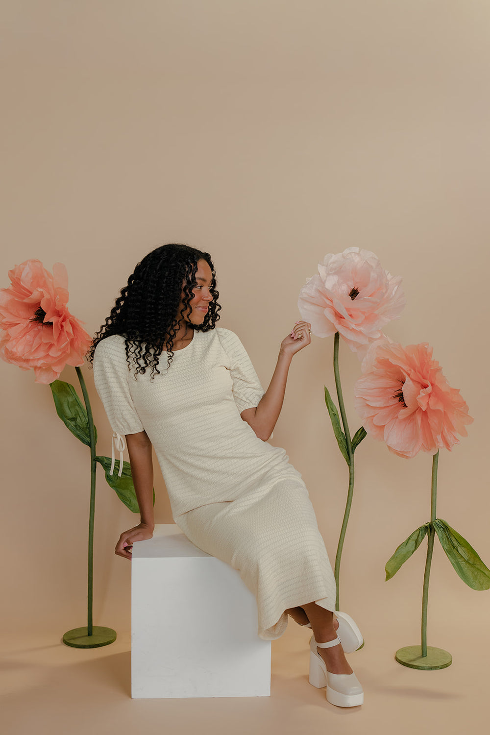 The Marceline Dress is your new closet MVP! Its stretchy, comfy fabric hugs just right, while the ruffled texture brings in all the fun. Pair it with sandals for a comfy outfit that’s anything but ordinary. Which color are you adding to cart??