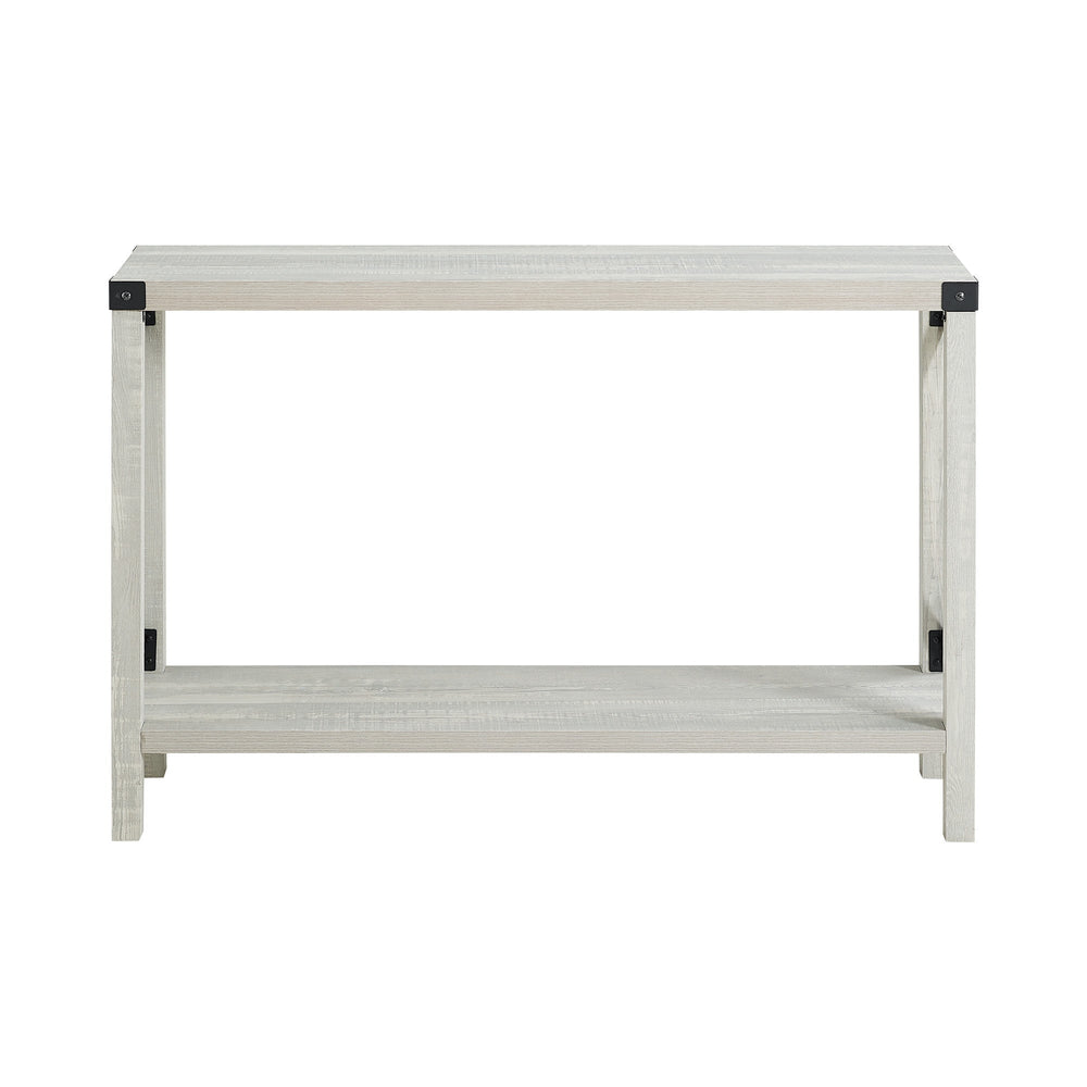 With this entry table, you’ll have a stylish entryway in no time. The urban industrial and charming, farmhouse style create a warm and inviting feel to your home, you’ll enjoy having. With metal accents on the corners and x-shaped sides for an intriguing design. A lower shelving made from durable laminate, provides a surface for your shoes when you get home or to decorate.