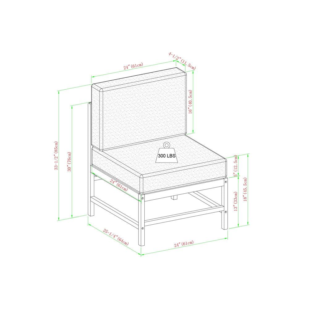Armless Sectional: 33.5" H x 24" L x 25.25" W 25 LBS