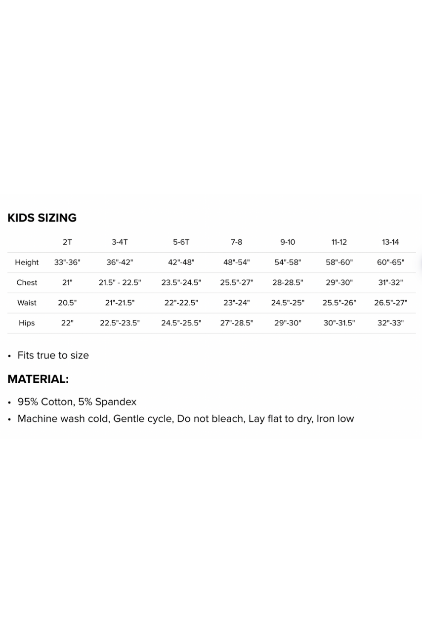 | 2T | 3-4T | 5-6T | 7-8 | 9-10 | 11-12 | 13-14 | |
