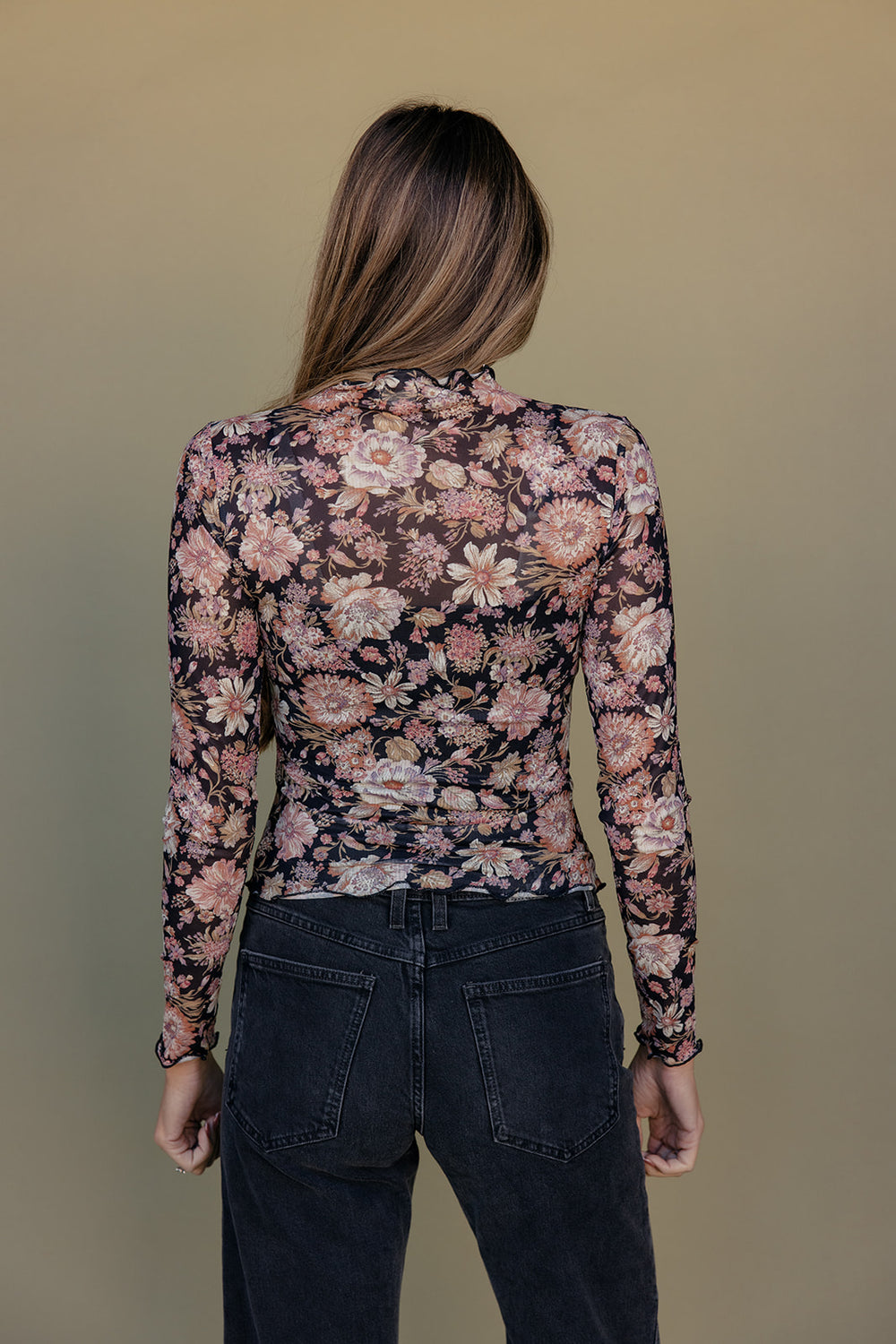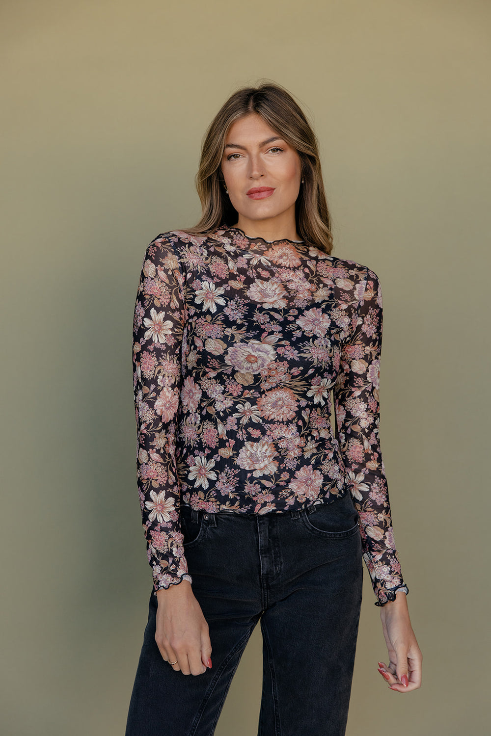 A romantic floral blouse with rich, moody tones perfect for transitioning seasons. Features a classic crew neckline and lightweight fabric for an effortlessly feminine look.