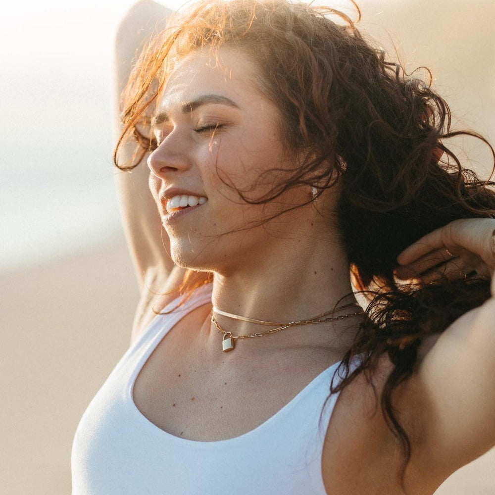 The Newport Gold Filled Lock Necklace is a gold filled lock on 16" 2mm gold filled paperclip chain. The perfect summer anthem piece for your collection.