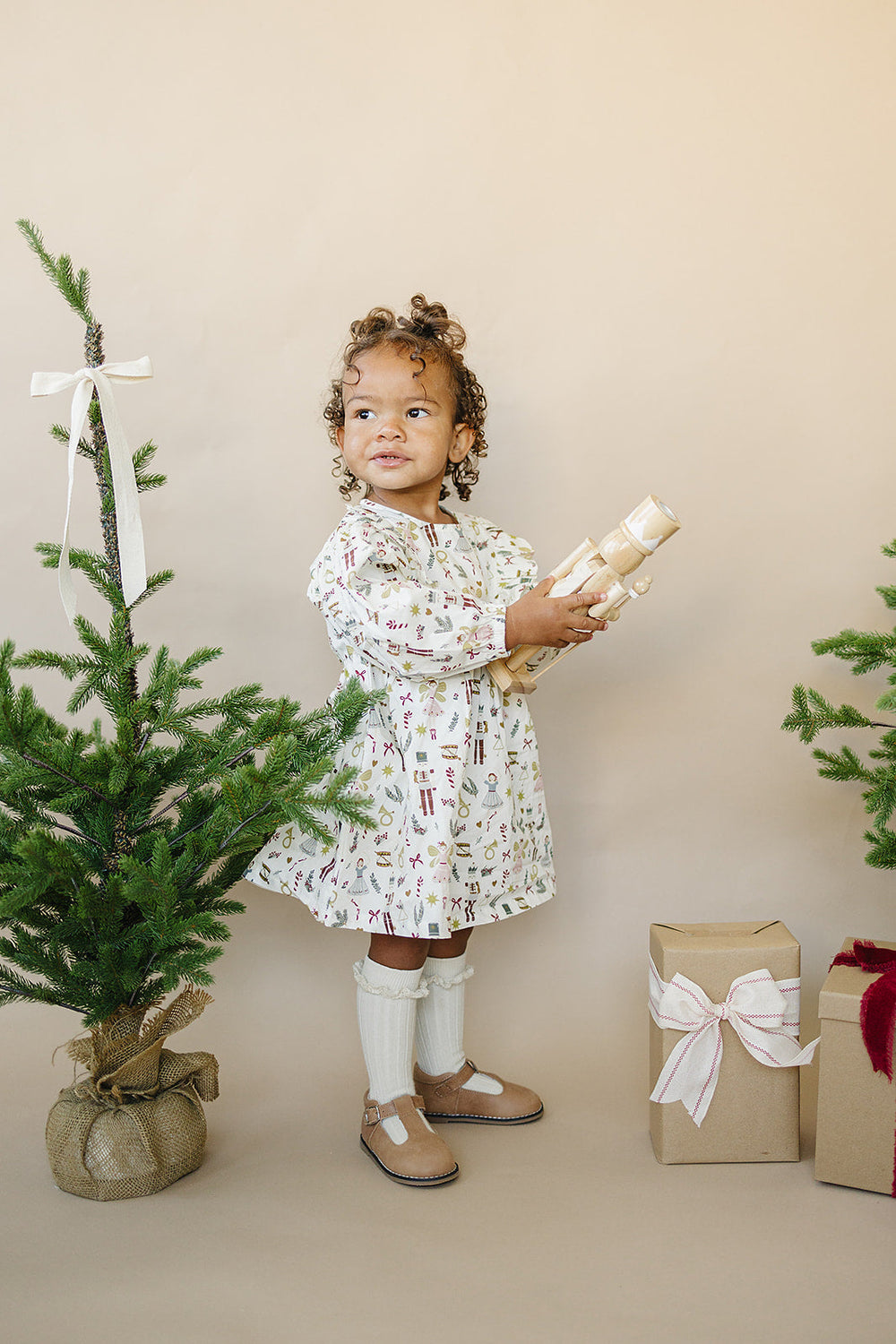 Perfect for holidays, or a day out, our Nutcracker Long Sleeve Ruffle Dress adds a touch of sophistication to your child's wardrobe. Pair it with our cozy tights and boots for a complete look. Shop now and let your little one shine in this beautiful dress!