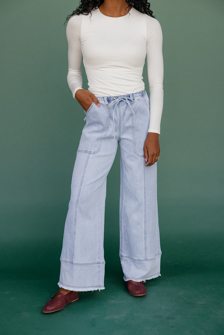 Top-tier denim with standout patch pockets and a tie waist. Because you always go the extra mile — and look good doing it.